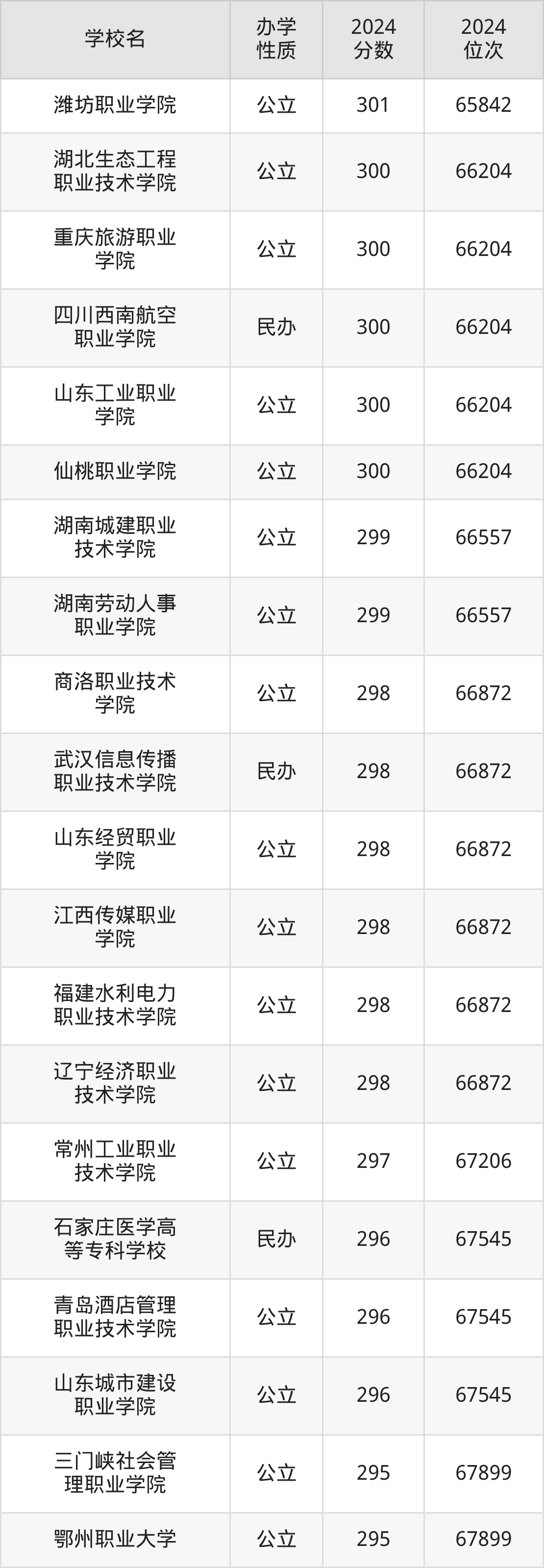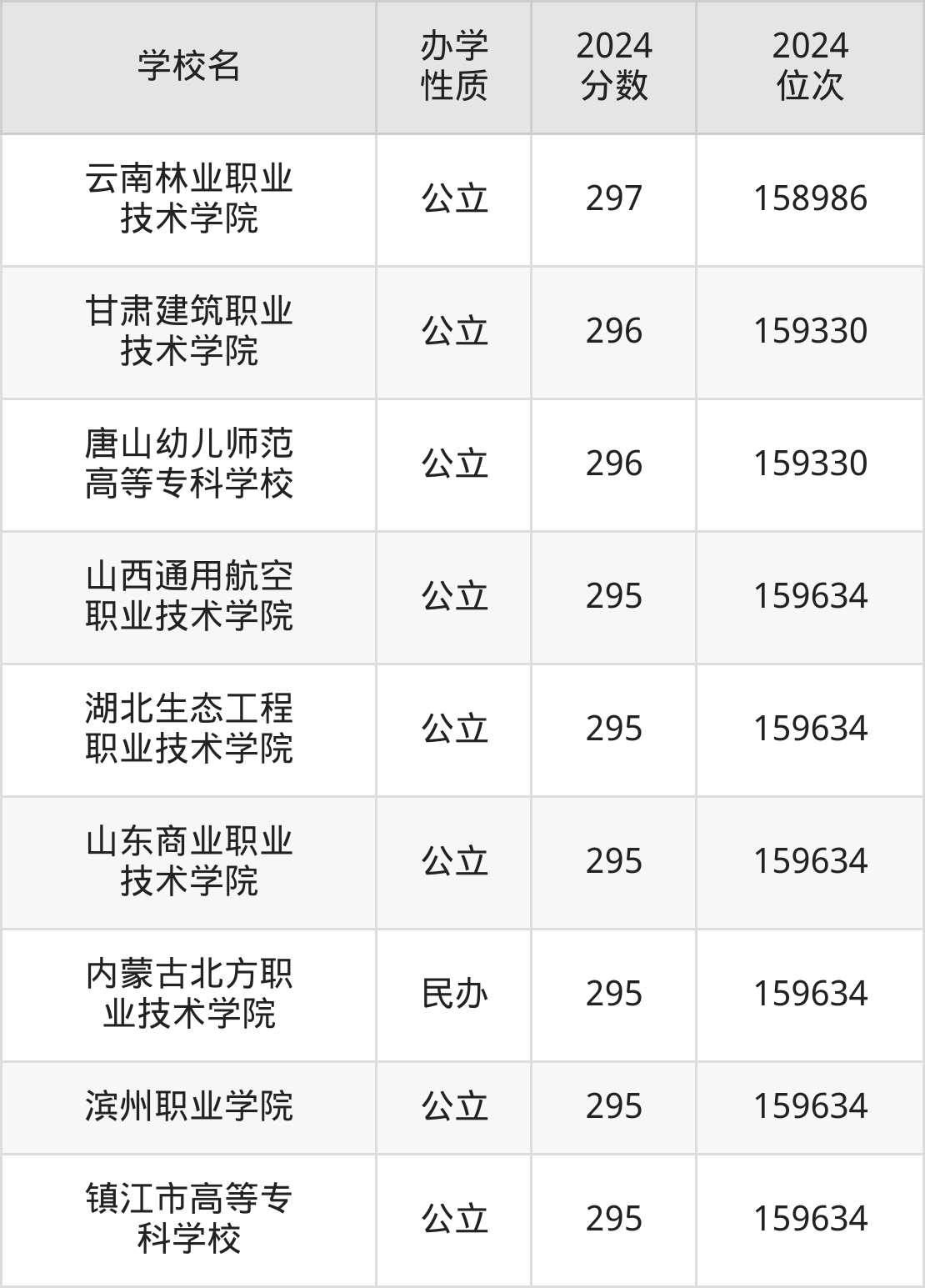 | 滨州职业学院 | 295 | 159634 |