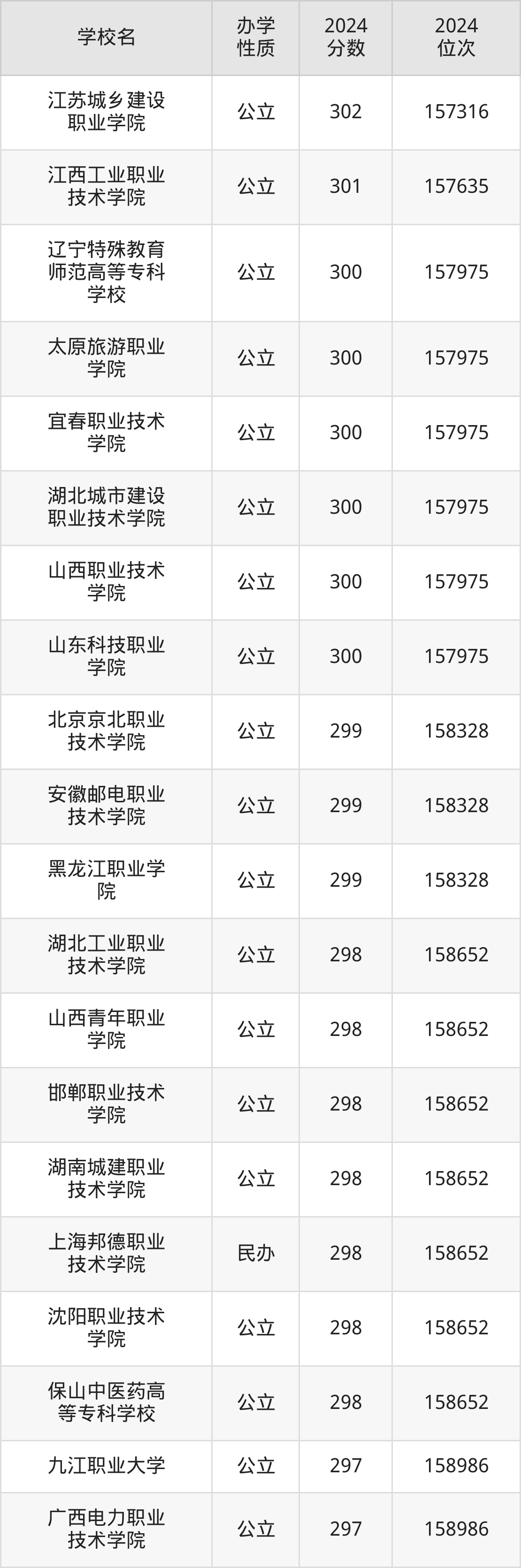 | 山西青年职业 学院 | 298 | 158652 |