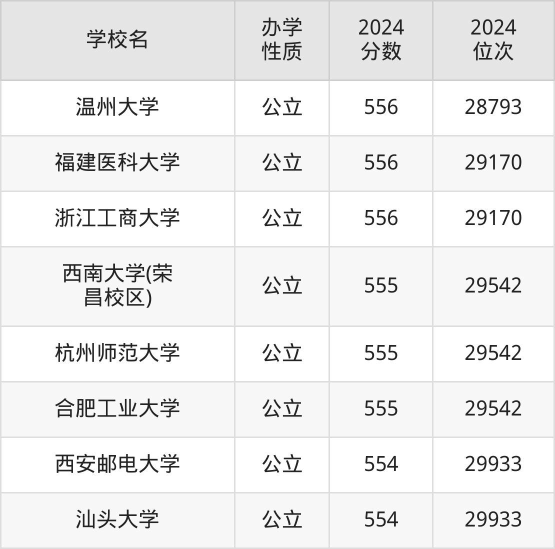 根据2024年辽宁的录取数据来看,559分的考生可以上合肥工业大学、西南大学(荣昌校区)、贵州大学等211大学,不过物理类和历史类的院校名单有所不同,本文就分科类整理出辽宁559分能上的211大学名单。