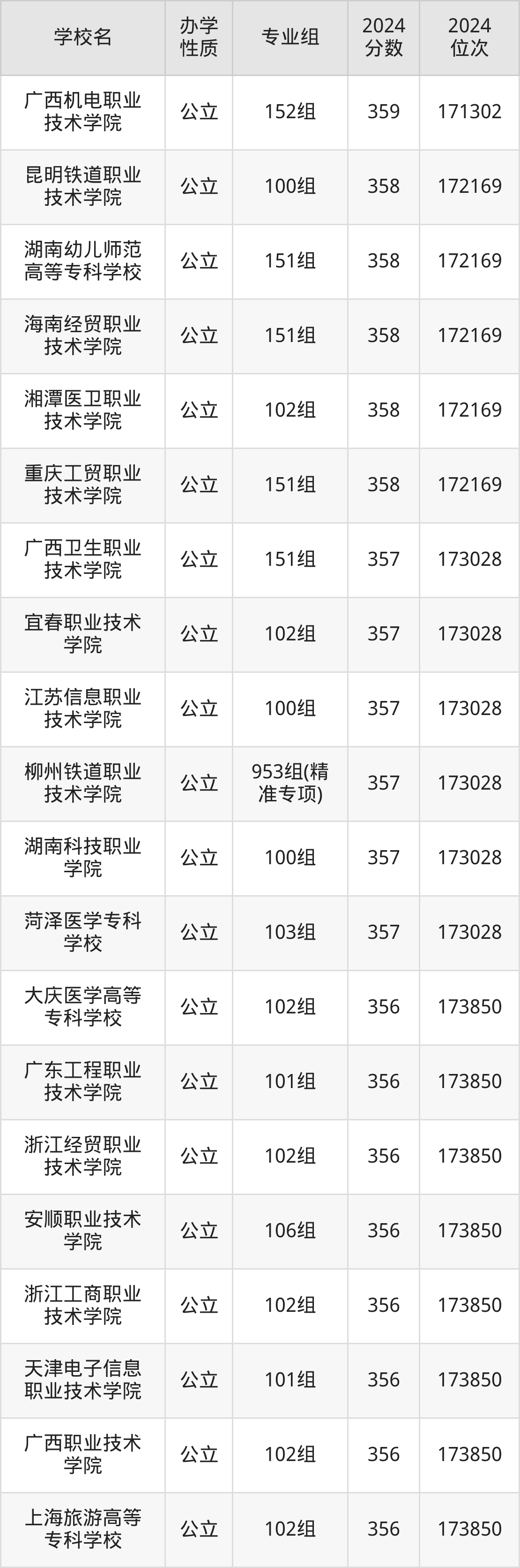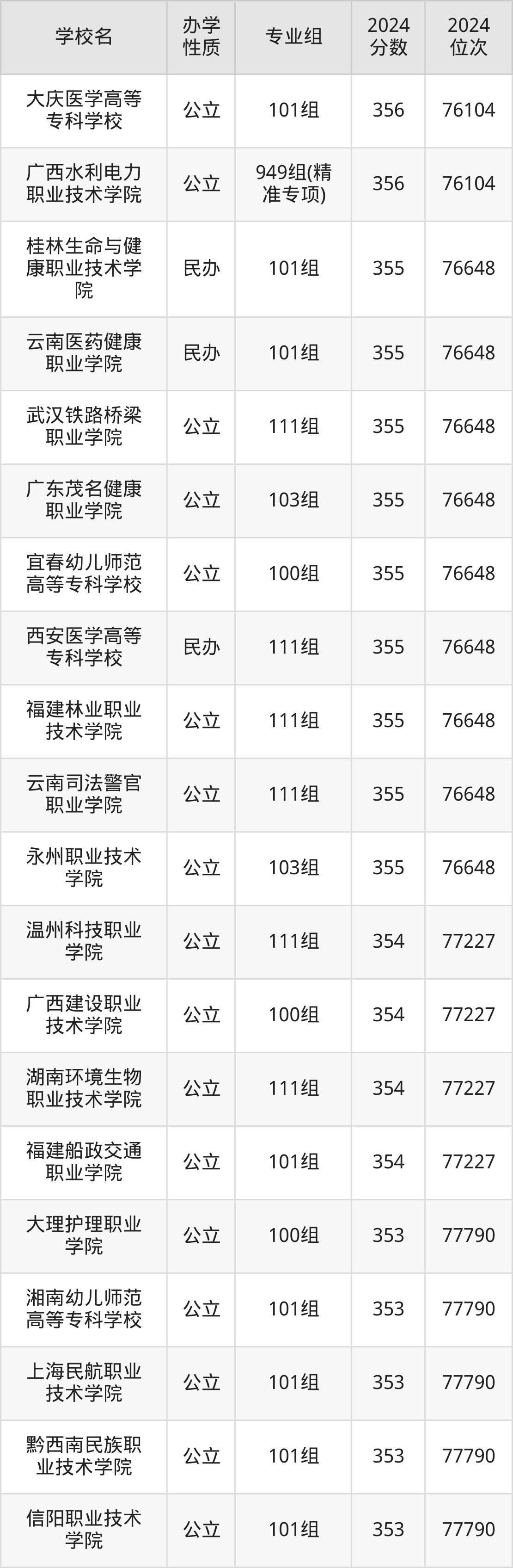 | 广西水利电力 职业技术学院 | 949组(精 准专项) | 356 | 76104 |
