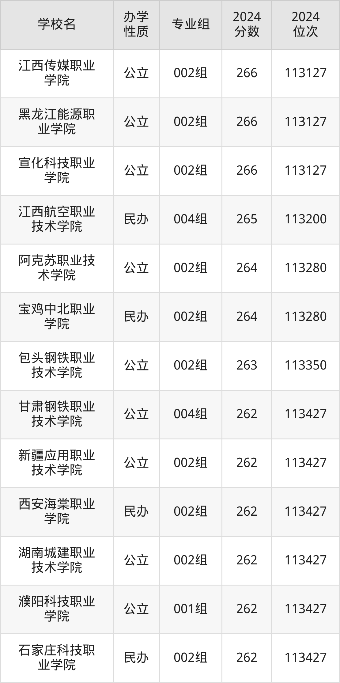 | 江西传媒职业 学院 | 002组 | 266 | 113127 |