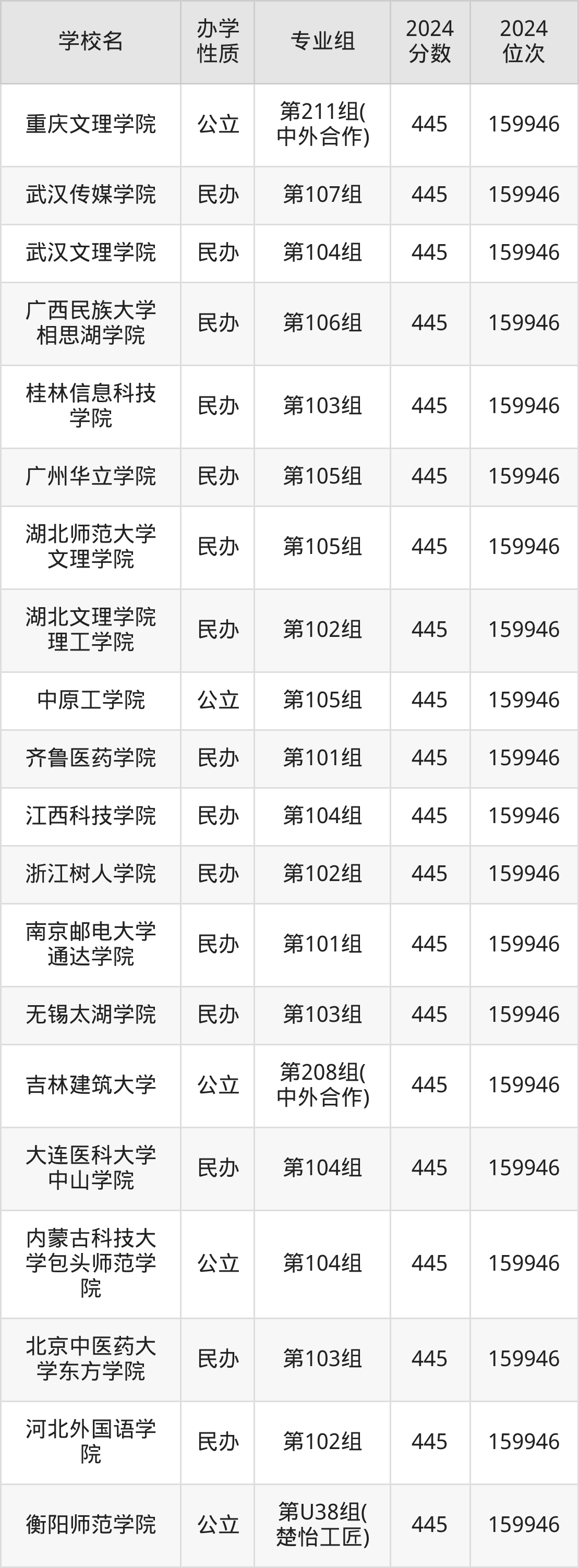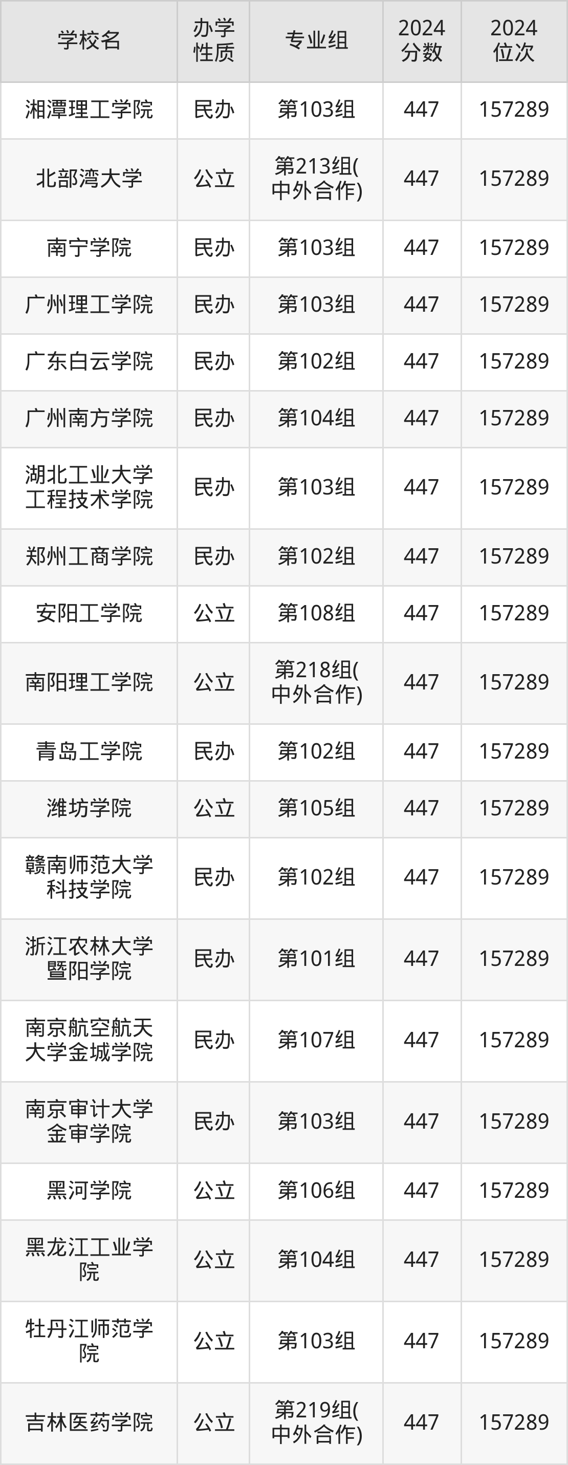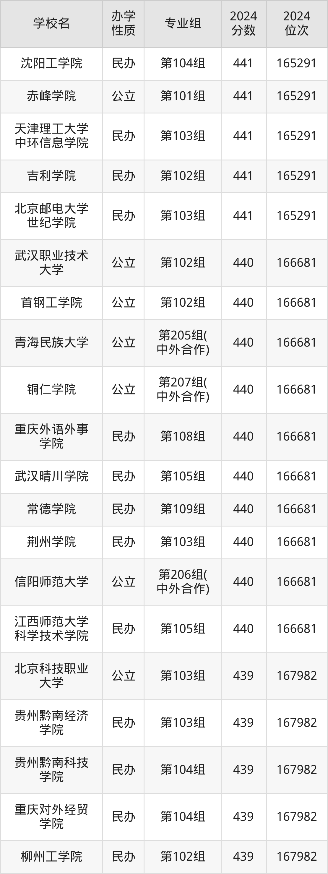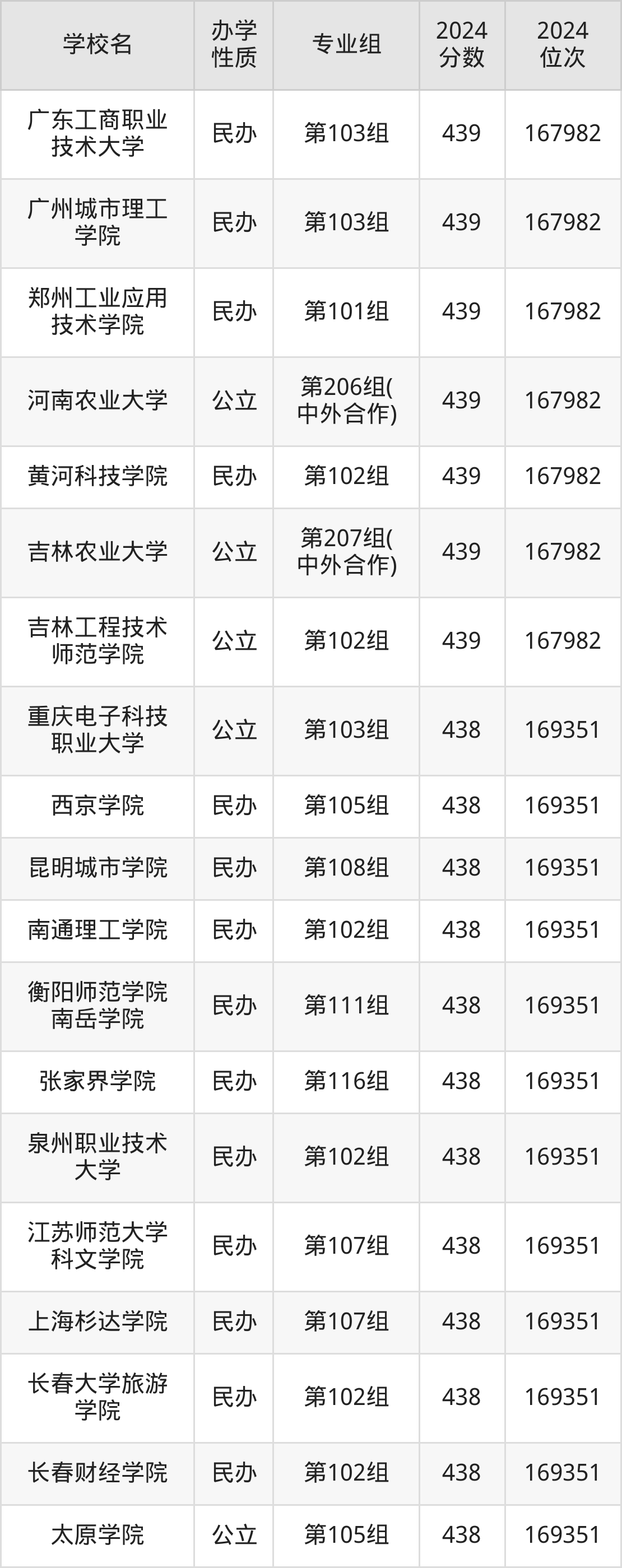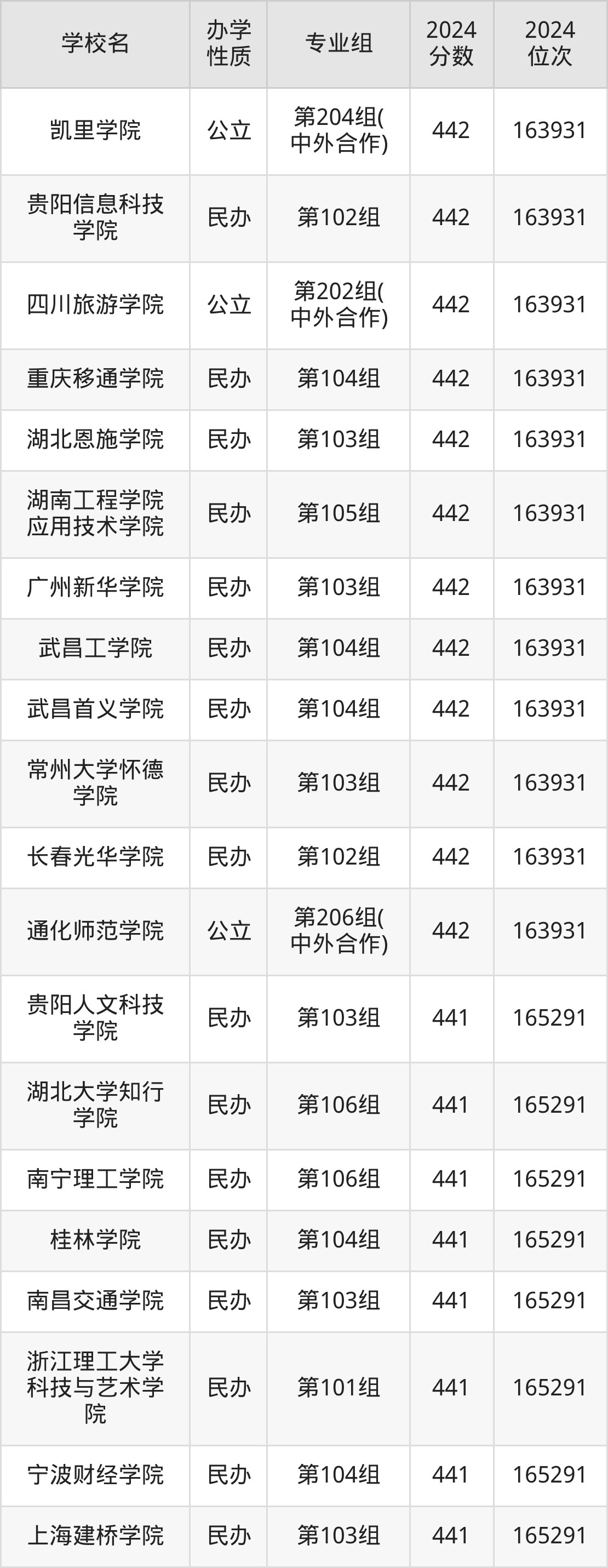 | 广州南方学院 | 第206组( 中外合作) | 441 | 165291 |