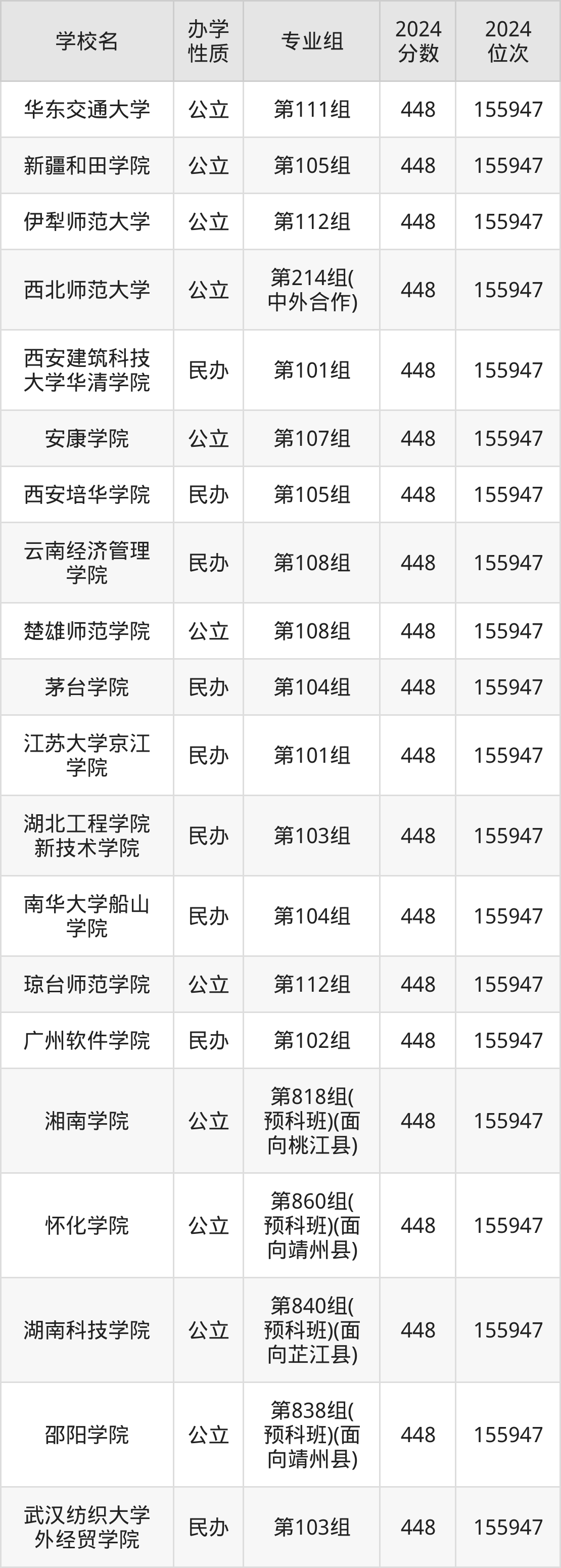 | 湘南学院 | 第818组( 预科班)(面 向桃江县) | 448 | 155947 |