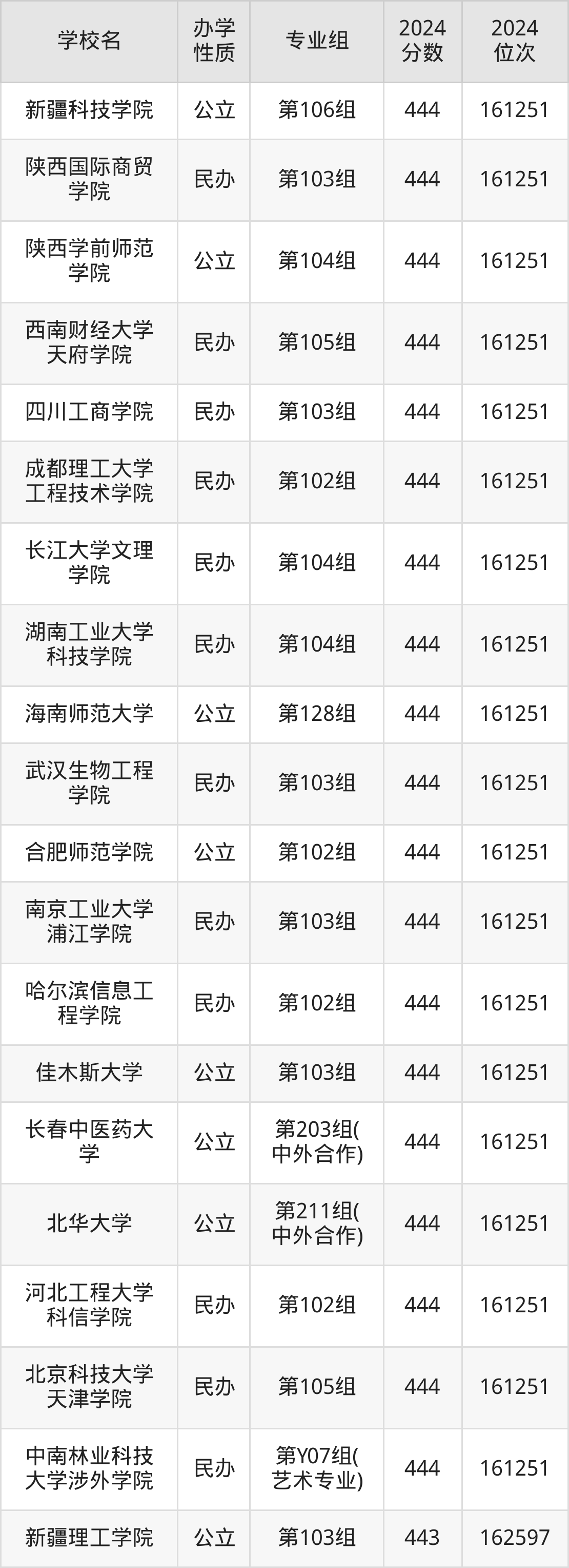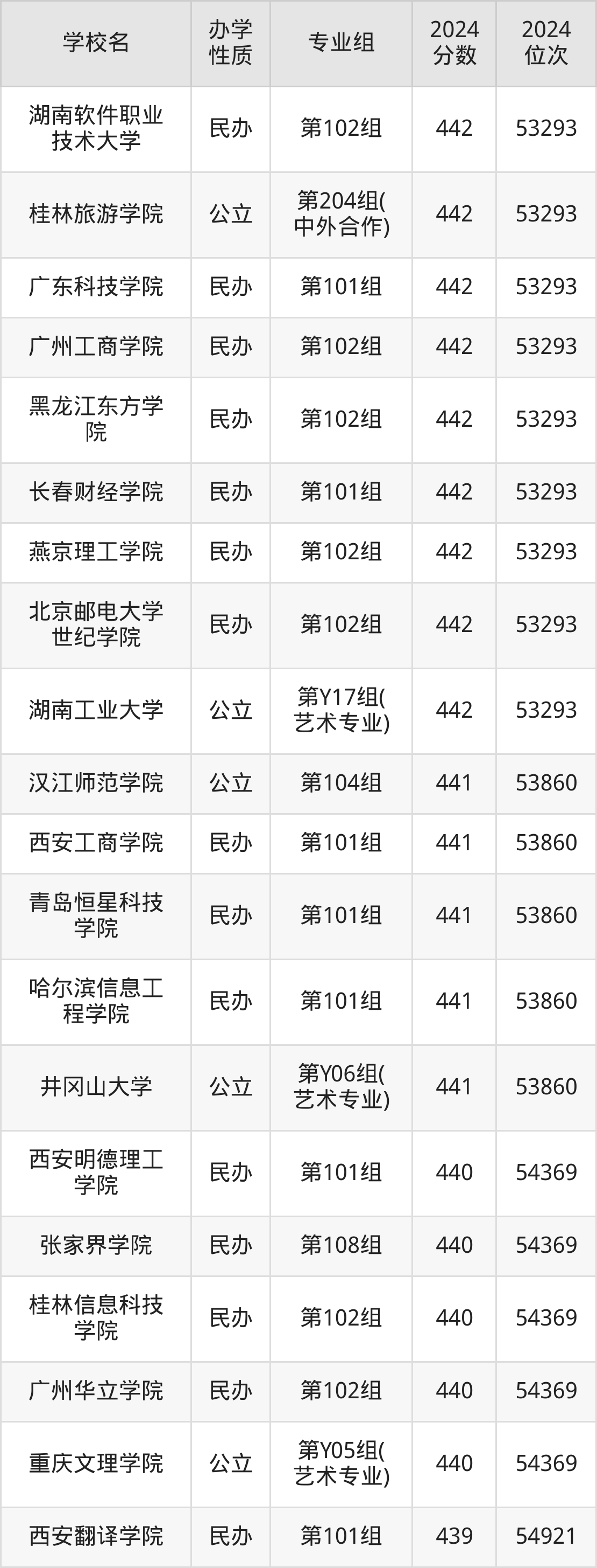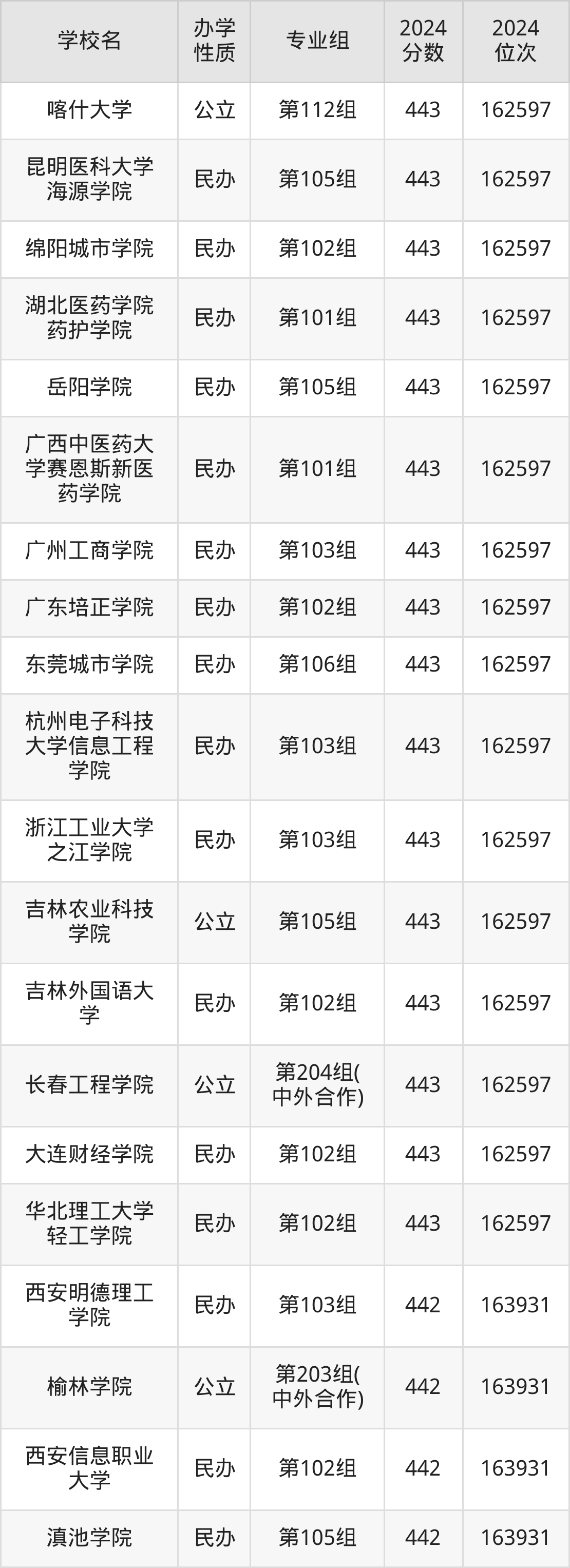 2024年湖南物理类443分考生能上新疆和田学院、伊犁师范大学、西北师范大学、西安建筑科技大学华清学院、安康学院等213所二本院校,具体录取分数线及位次为: