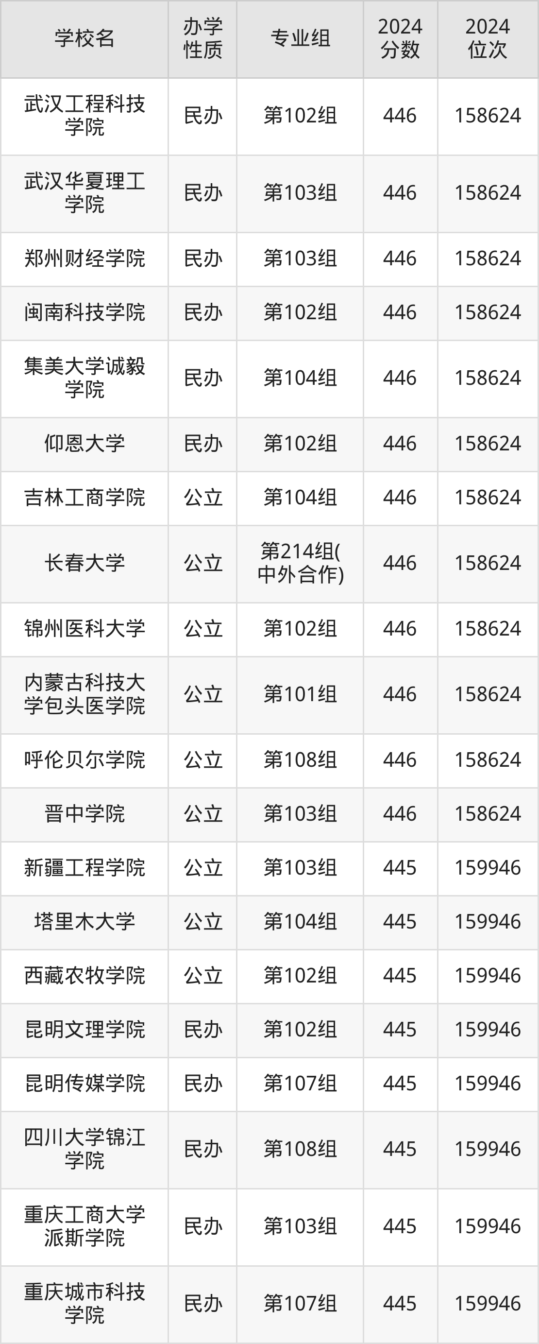 | 学校名 | 专业组 | 2024 分数 | 2024 位次 |