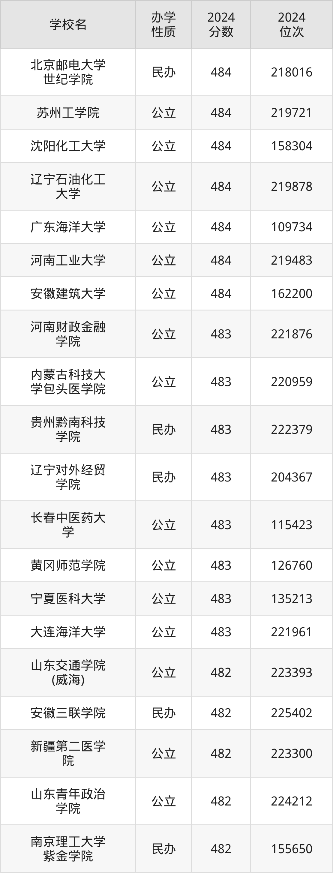 | 北京邮电大学 世纪学院 | 484 | 218016 |