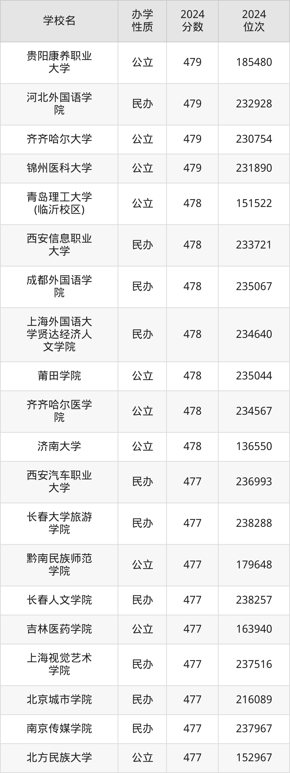为了方便2025届考生了解自己能上哪些大学,本文也整理出了山东479分左右能上的所有大学名单,供2025年考生参考。