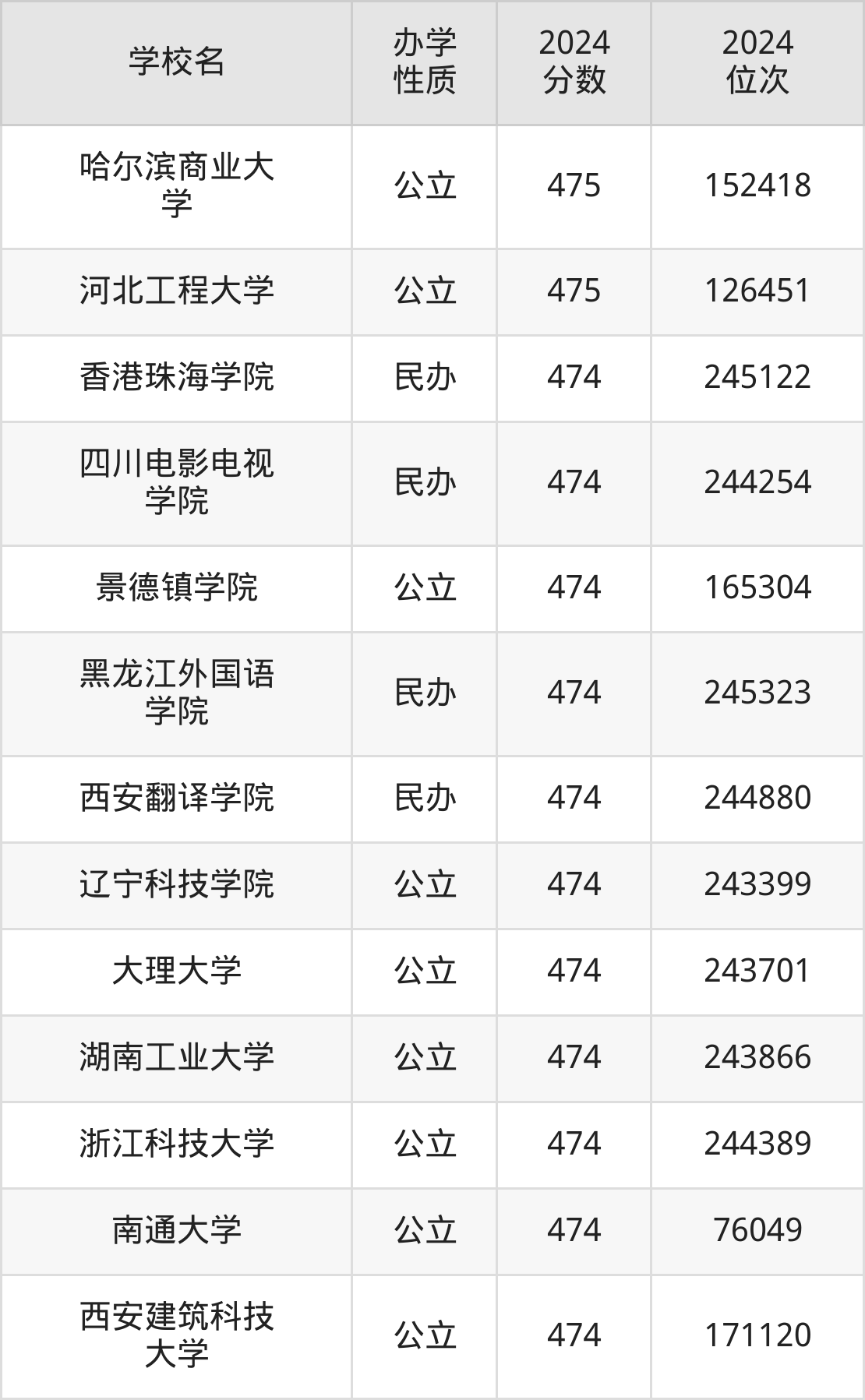 | 哈尔滨商业大 学 | 475 | 152418 |