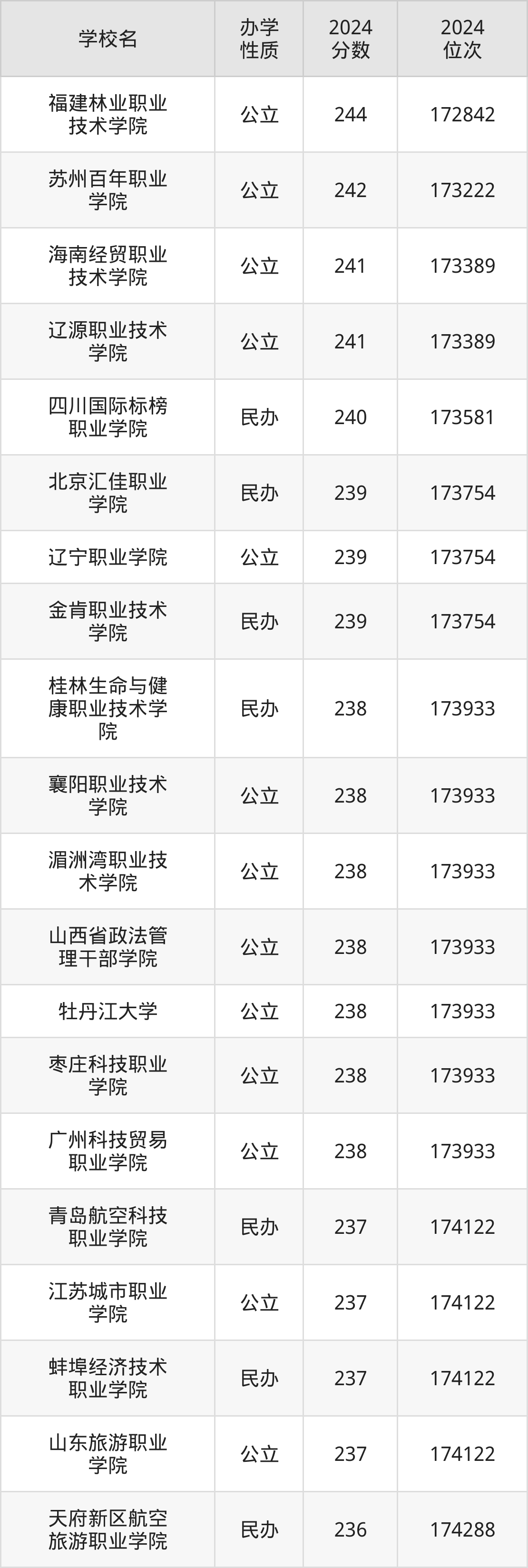 | 桂林生命与健 康职业技术学 院 | 238 | 173933 |