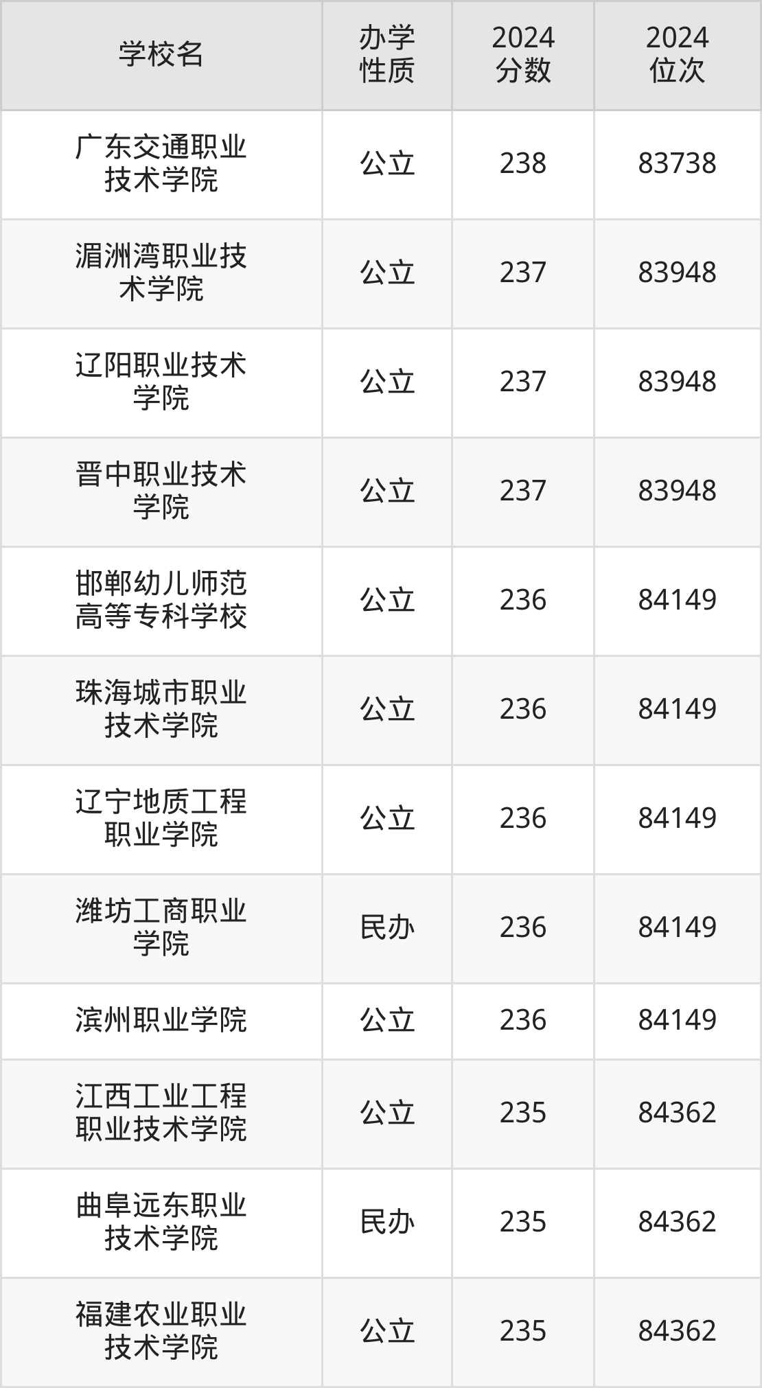 | 潍坊工商职业 学院 | 236 | 84149 |