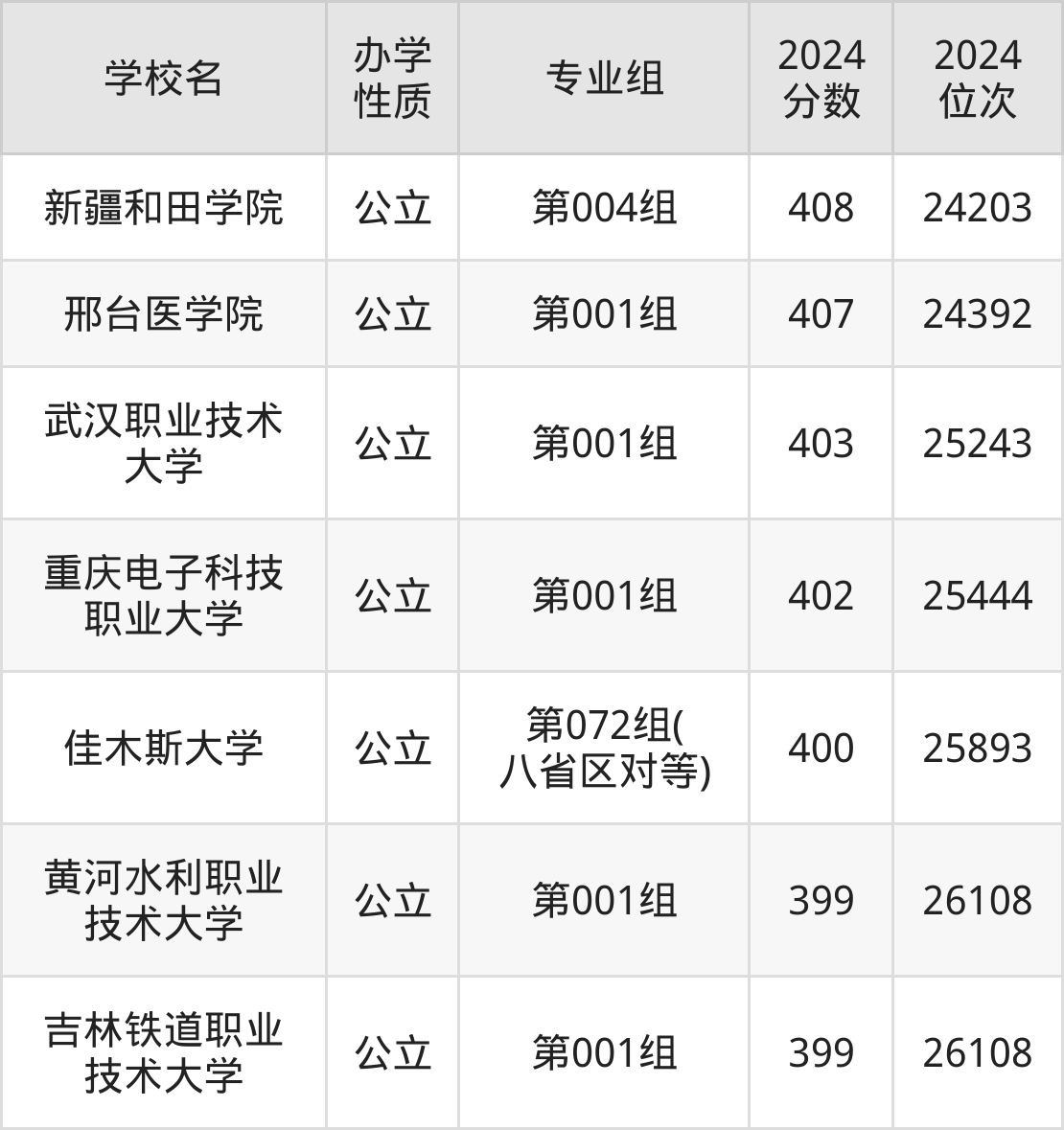 | 学校名 | 专业组 | 2024 分数 | 2024 位次 |