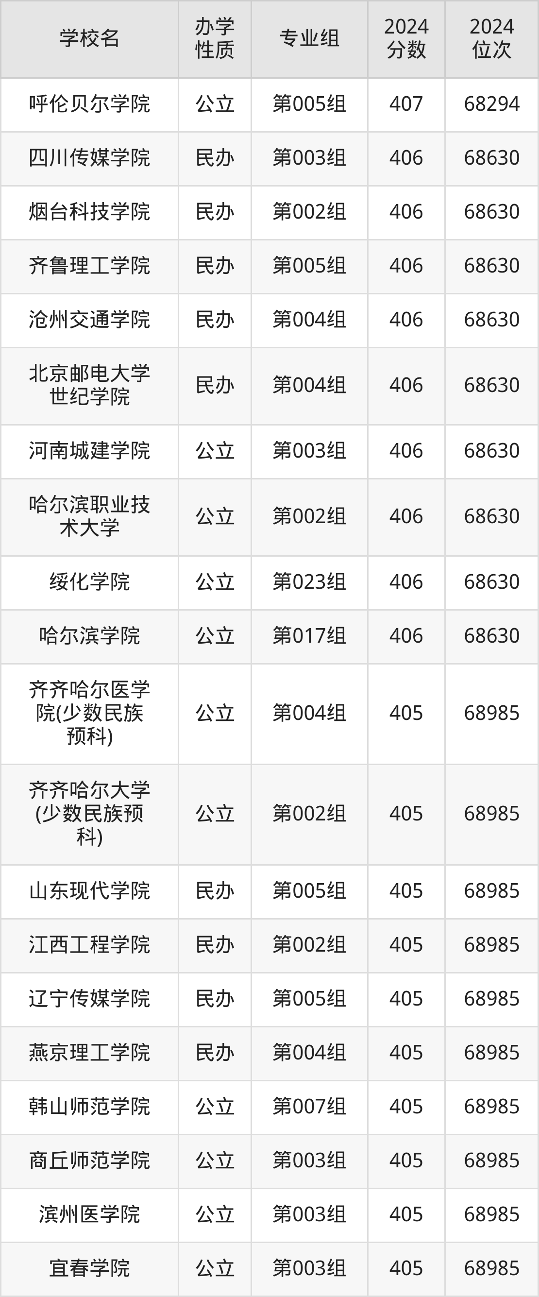 | 齐齐哈尔医学 院(少数民族 预科) | 第004组 | 405 | 68985 |