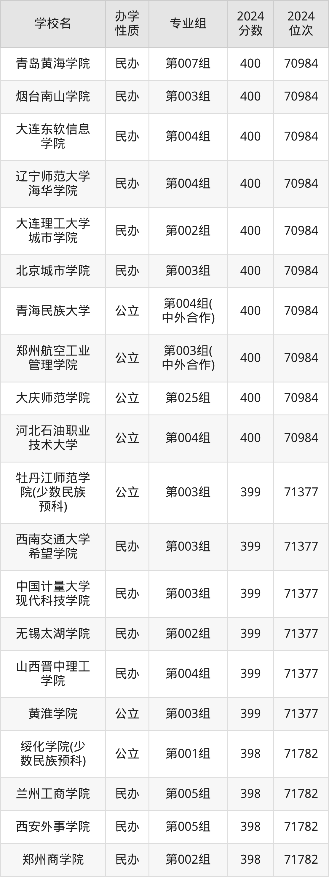 | 青海民族大学 | 第004组( 中外合作) | 400 | 70984 |
