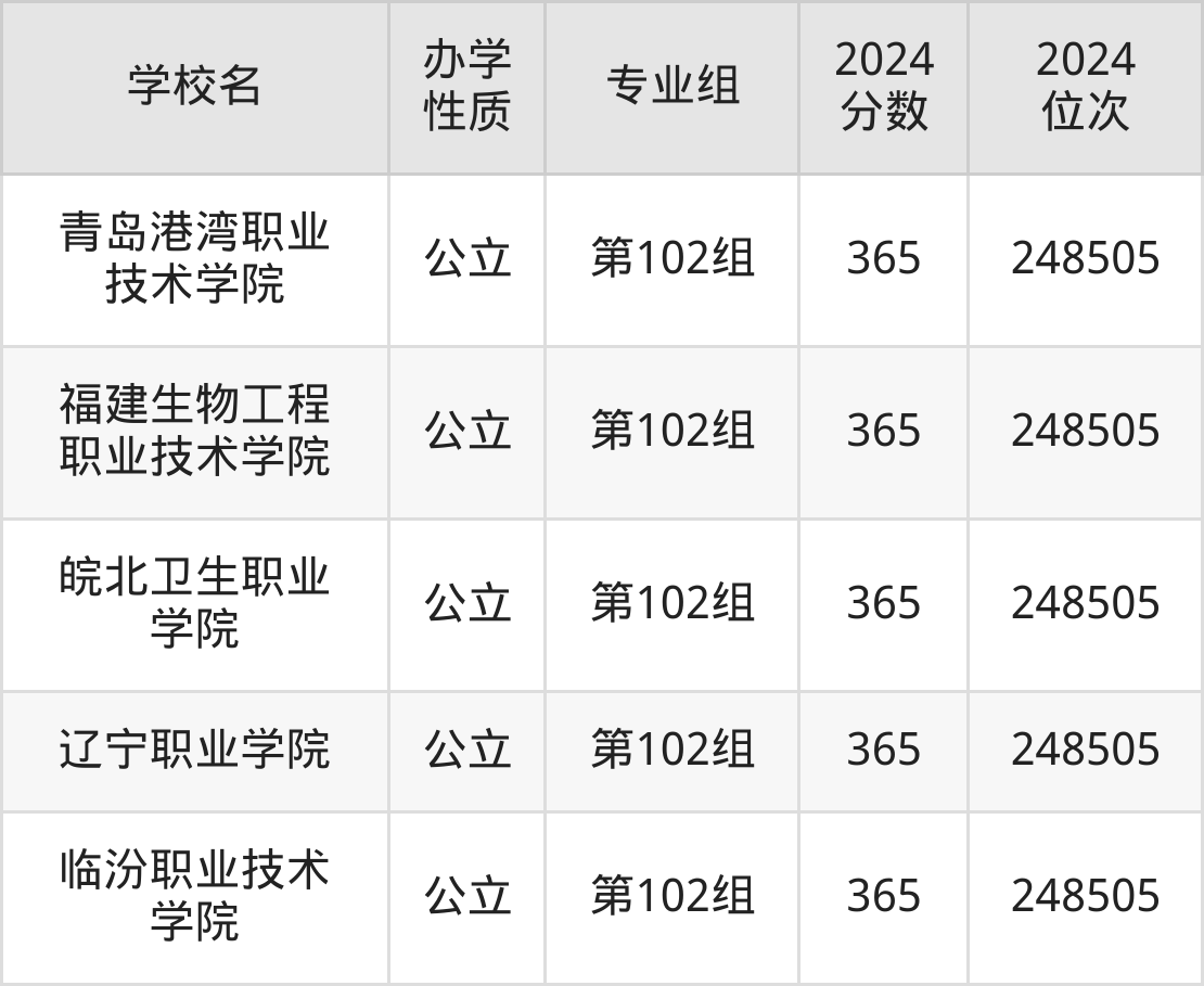 | 福建生物工程 职业技术学院 | 第102组 | 365 | 248505 |