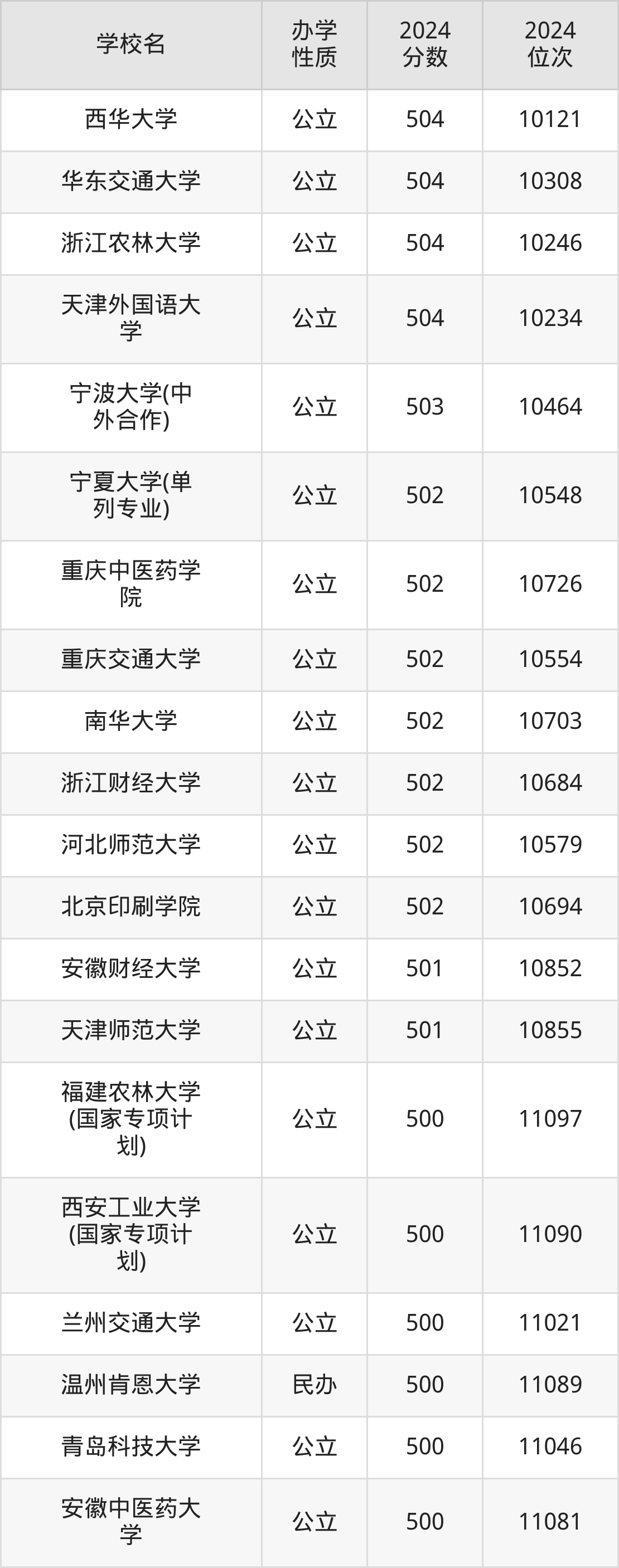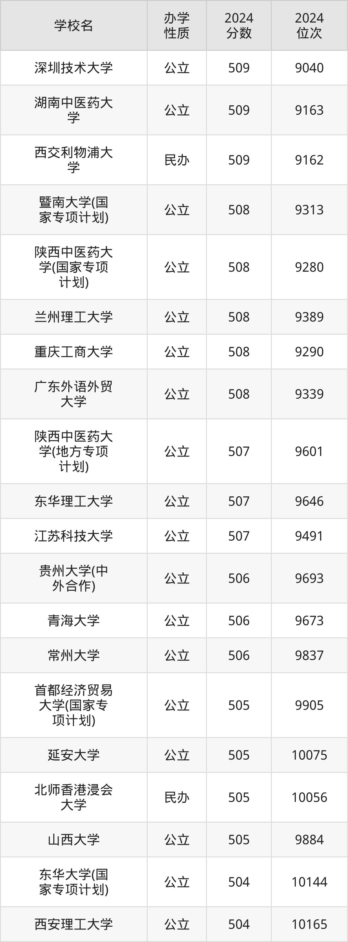 | 陕西中医药大 学(地方专项 计划) | 507 | 9601 |
