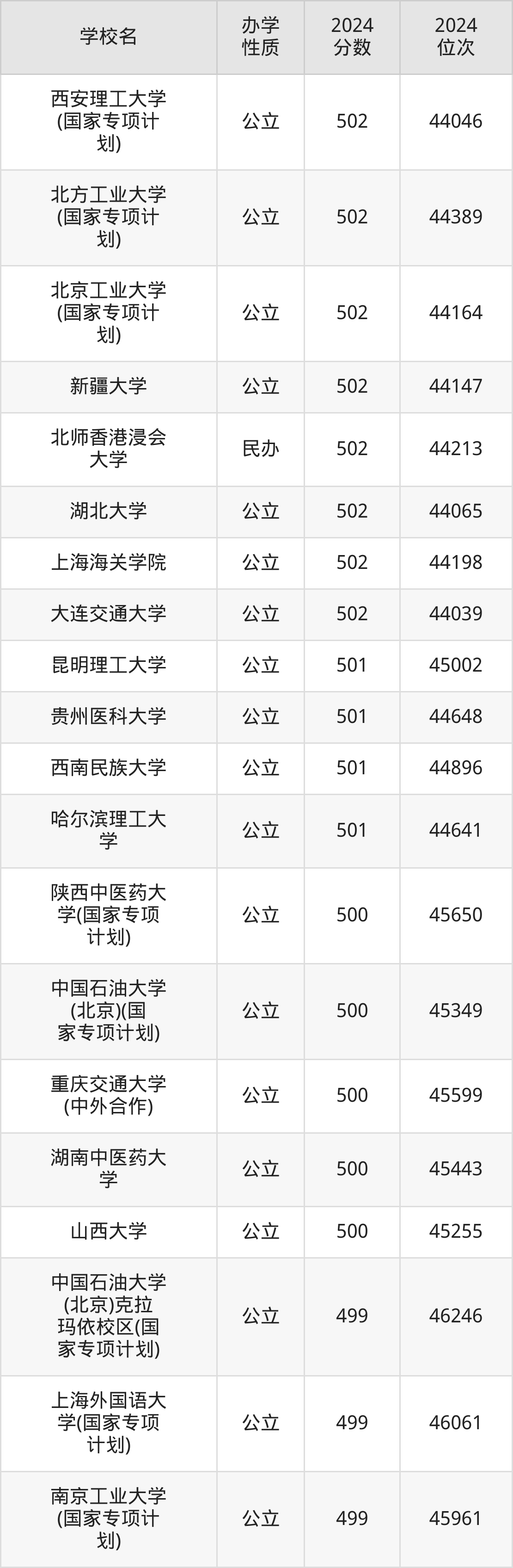 | 西安理工大学 (国家专项计 划) | 502 | 44046 |
