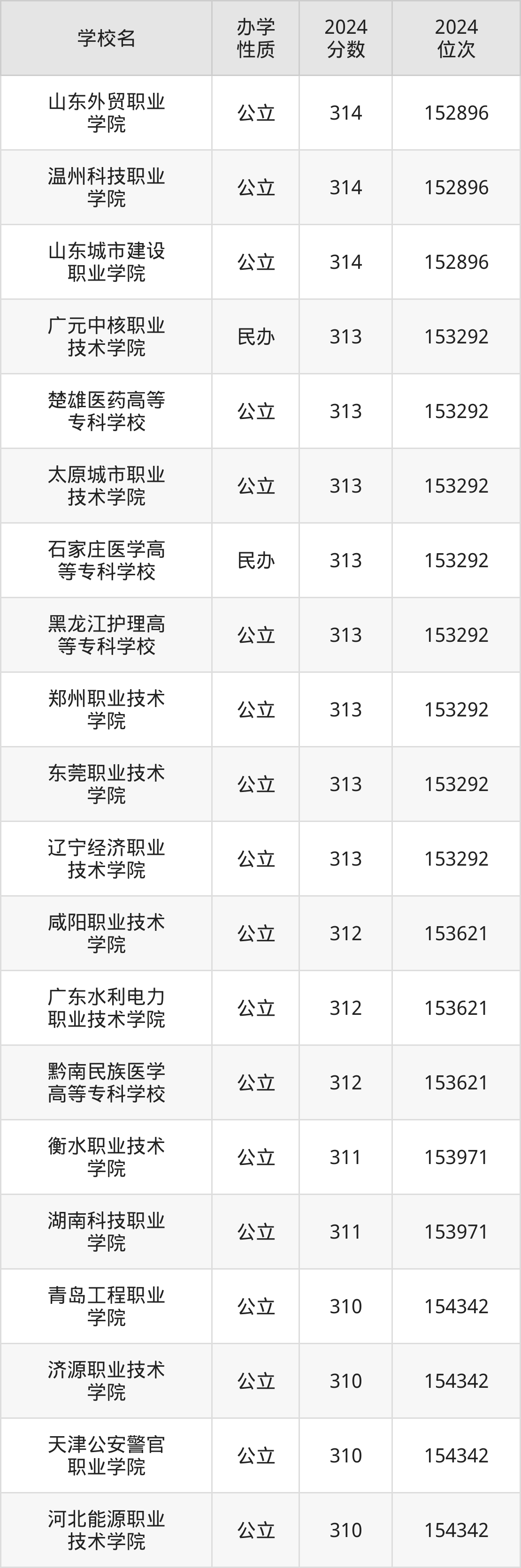 | 河北能源职业 技术学院 | 310 | 154342 |