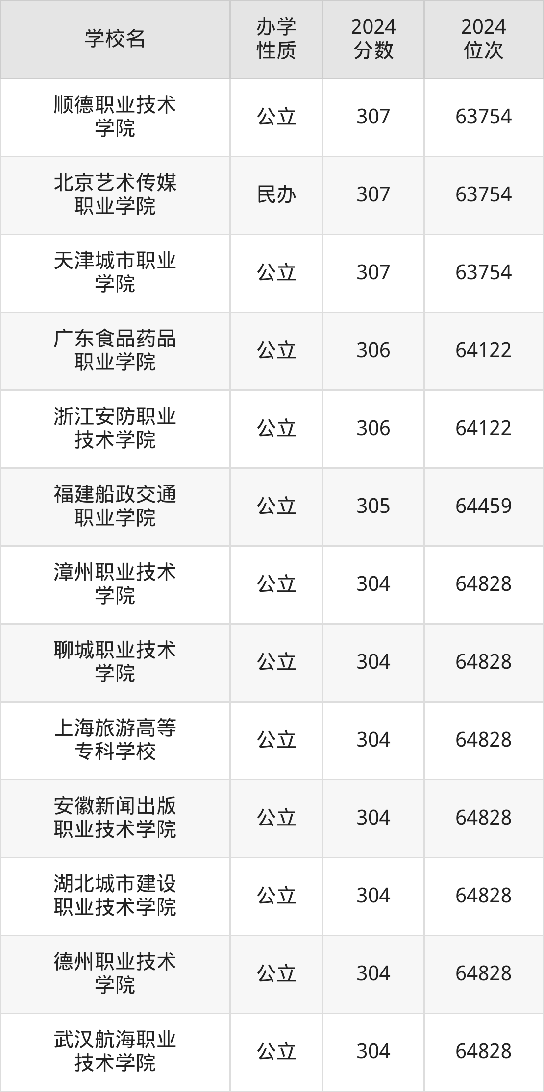 | 北京经济管理 职业学院 | 306 | 155821 |