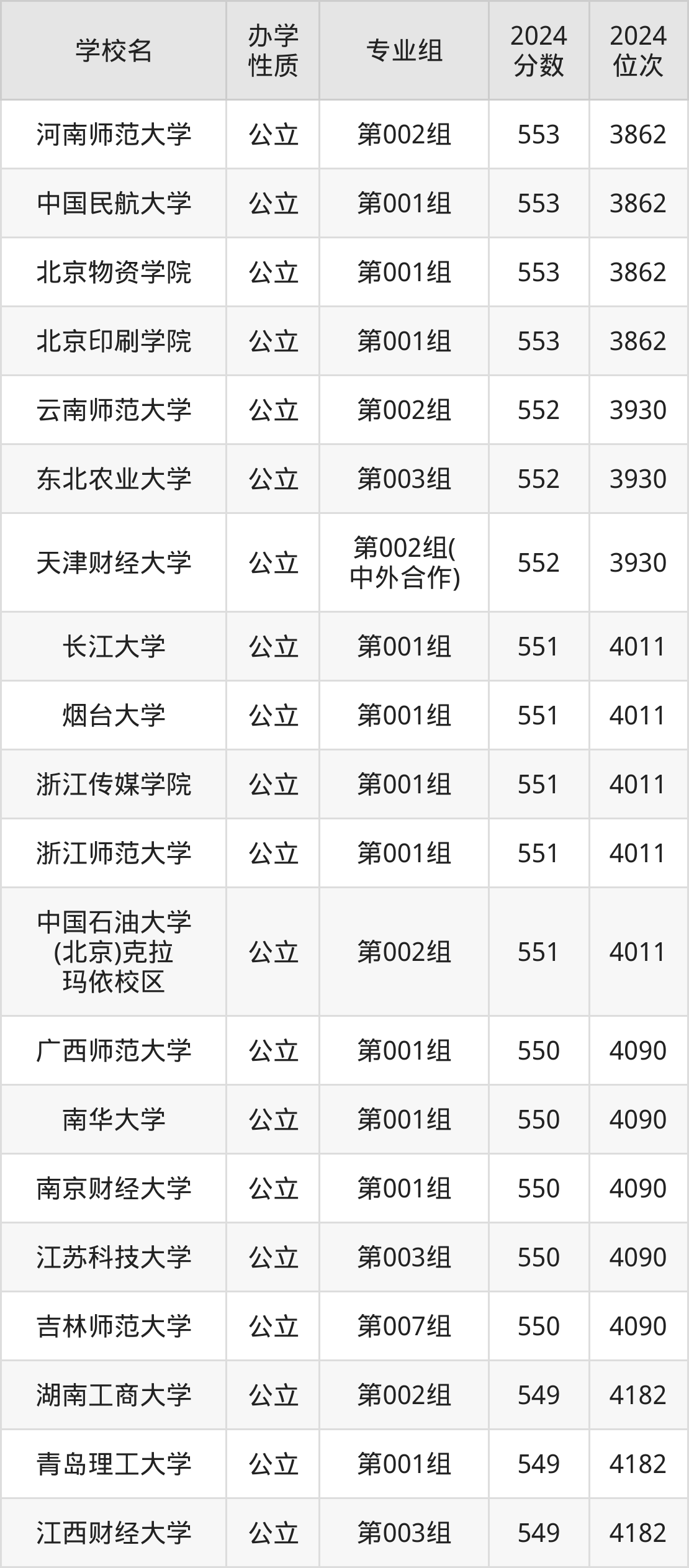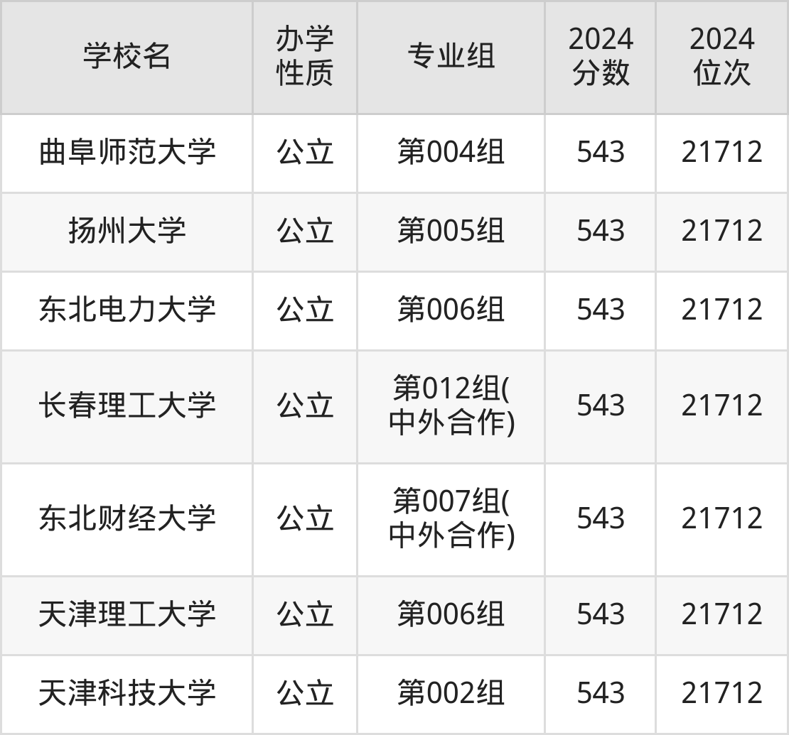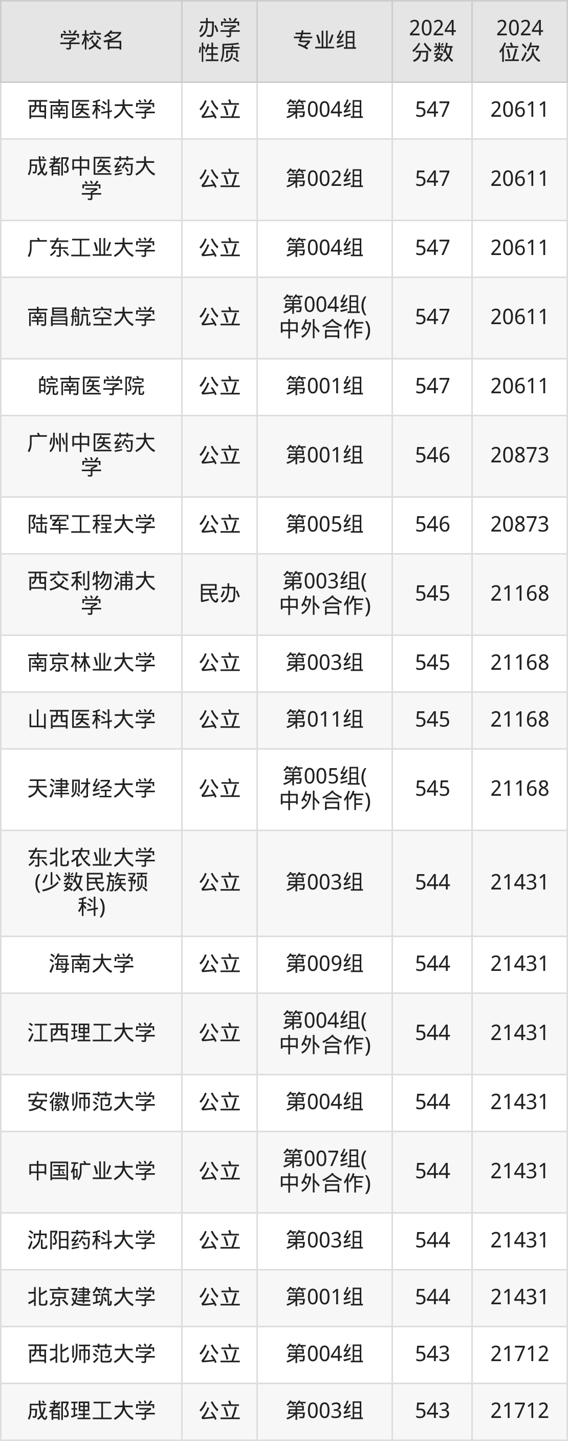 | 学校名 | 专业组 | 2024 分数 | 2024 位次 |