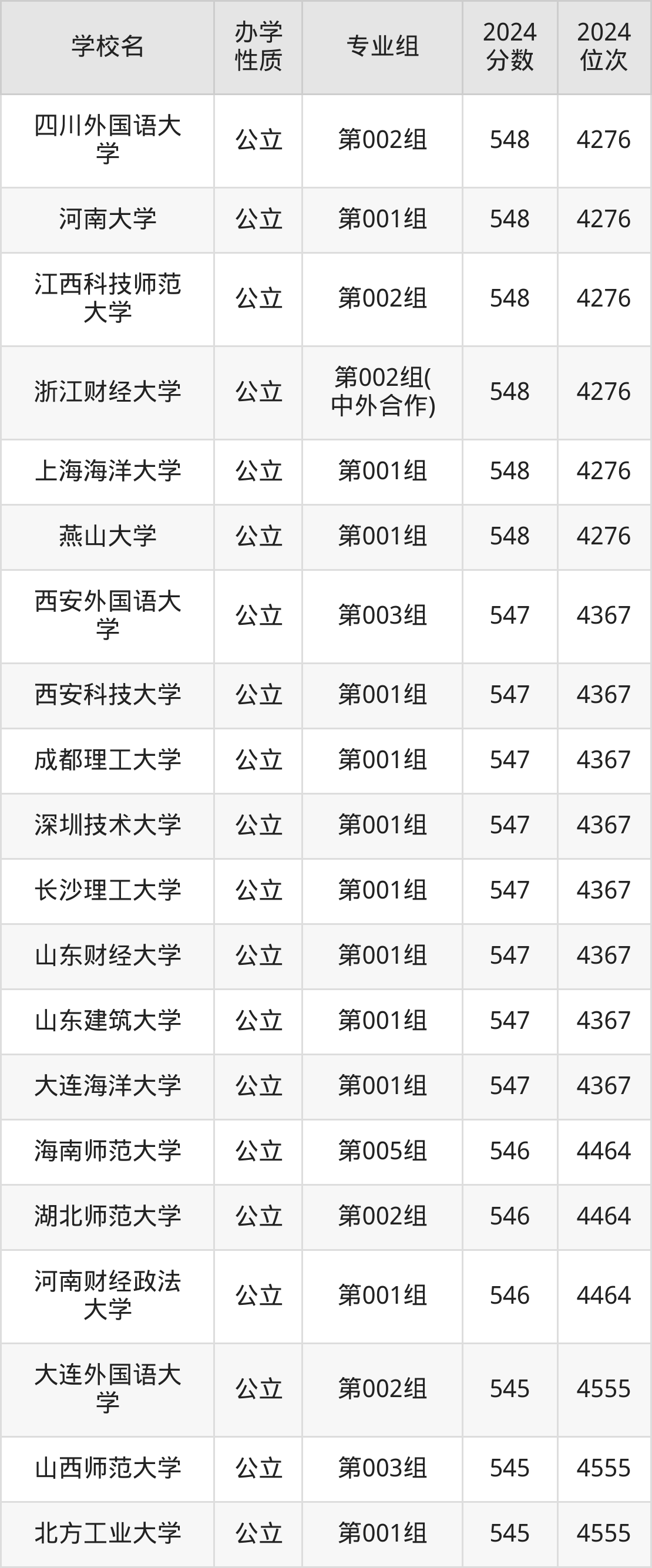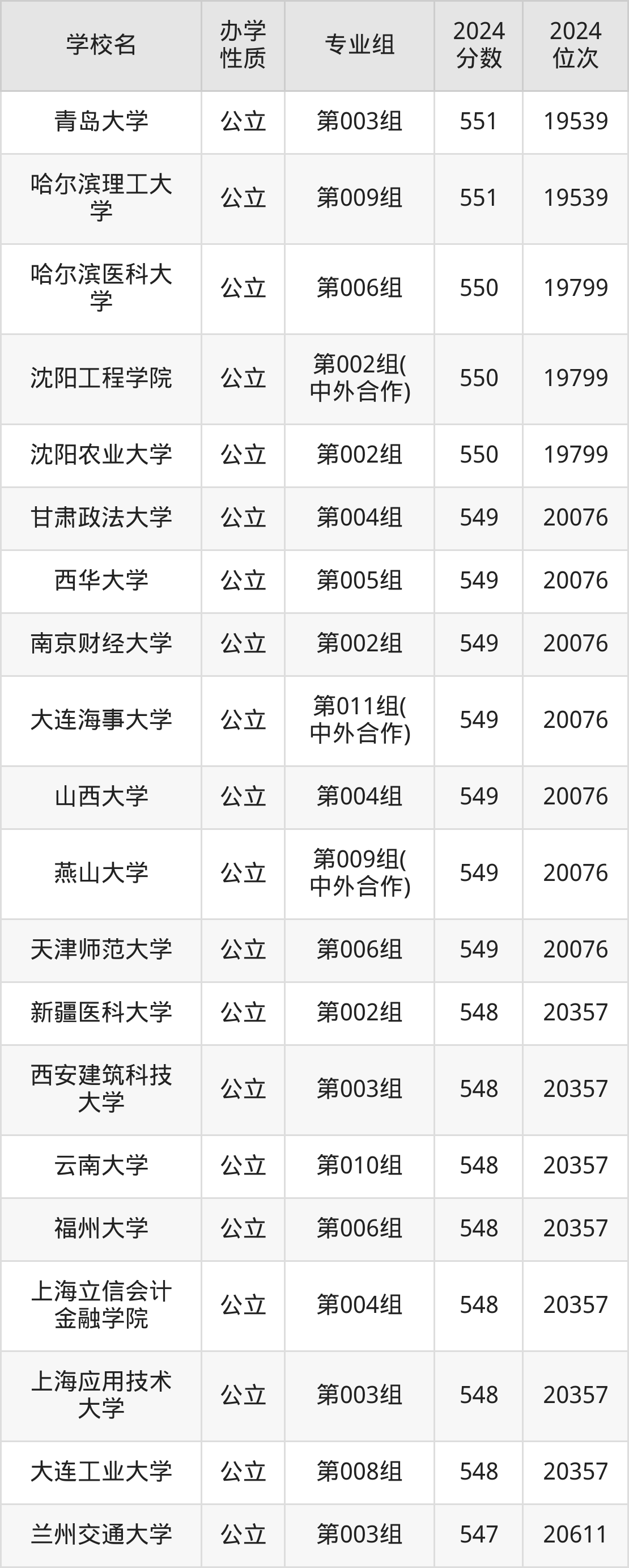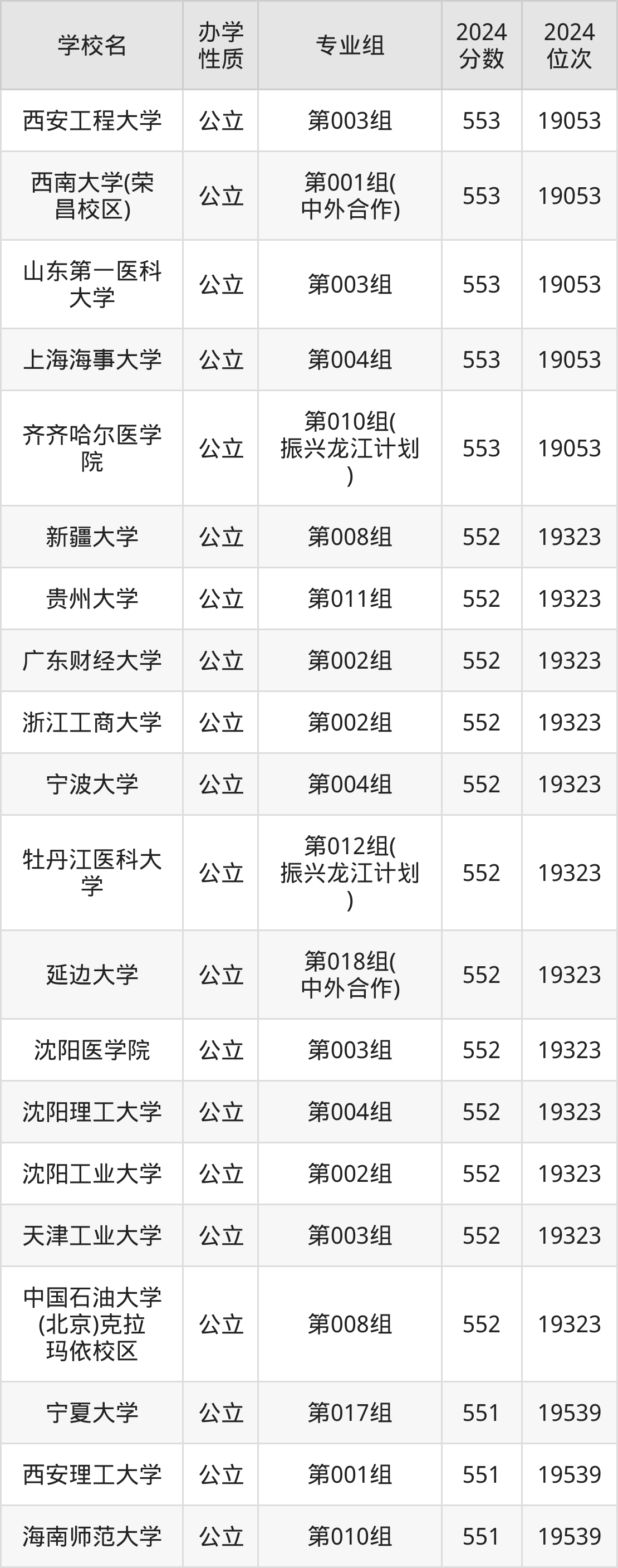 | 学校名 | 专业组 | 2024 分数 | 2024 位次 |
