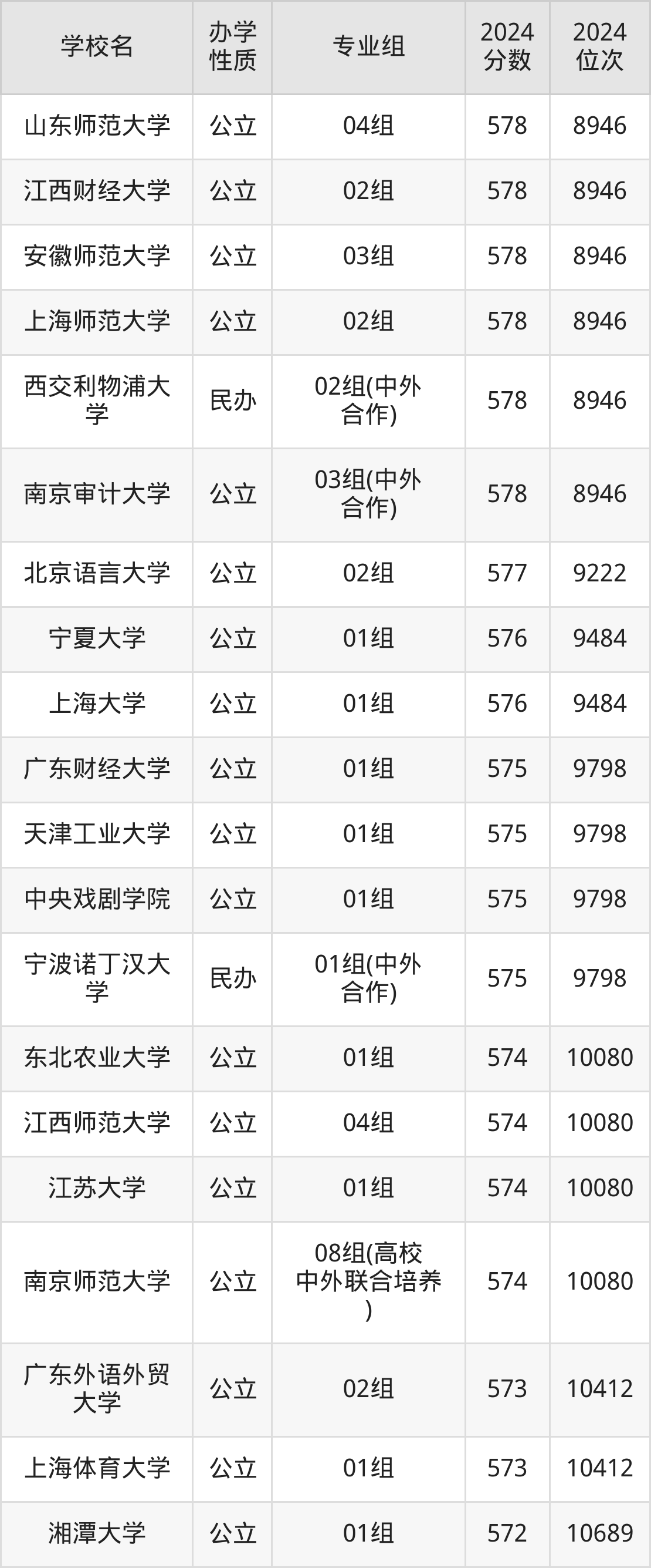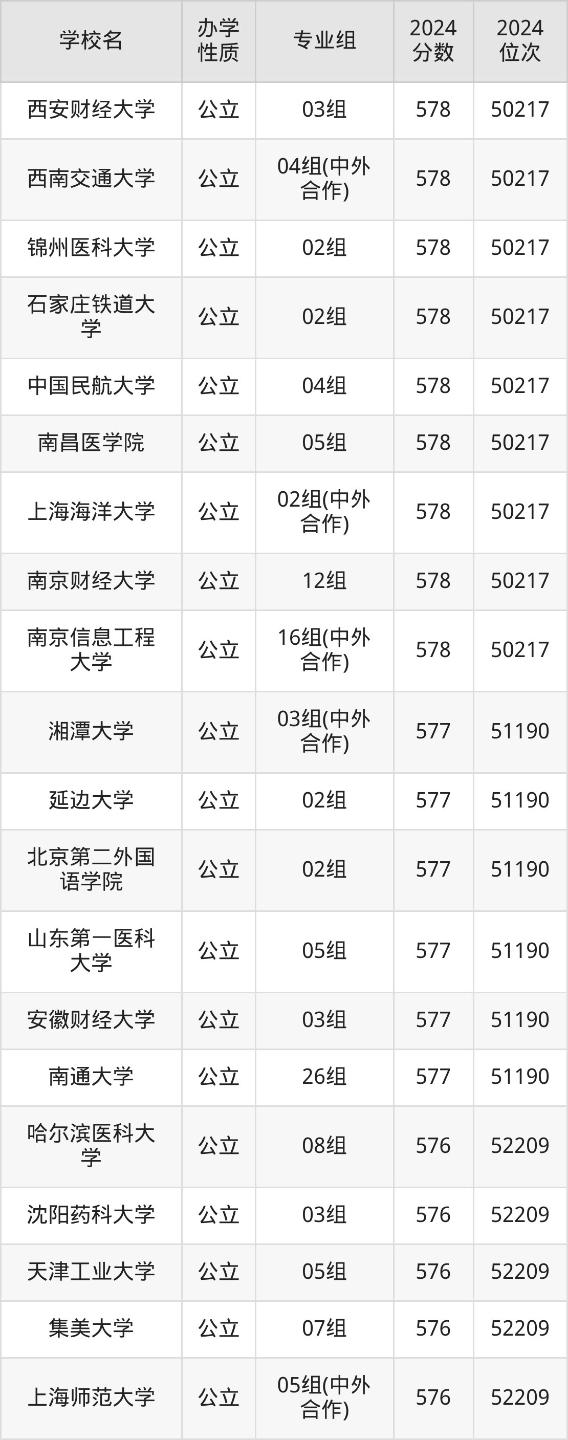 | 学校名 | 专业组 | 2024 分数 | 2024 位次 |