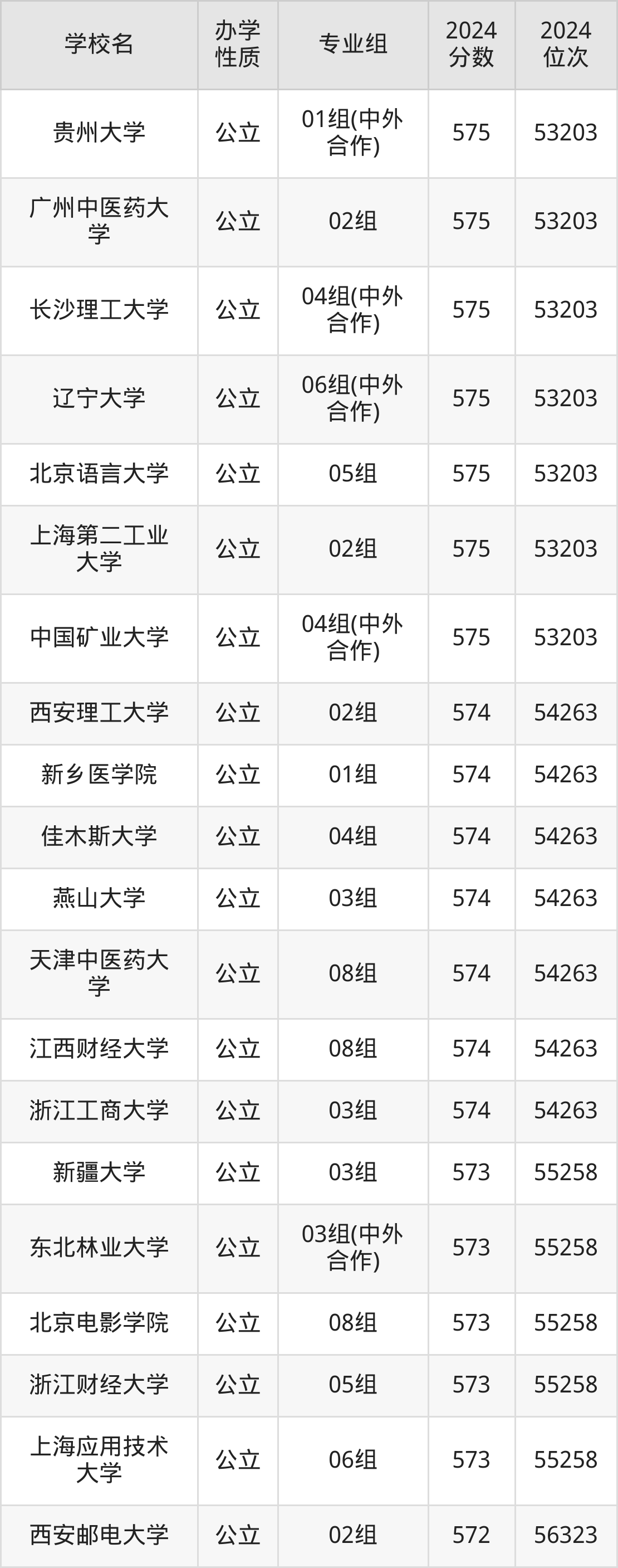 | 贵州大学 | 01组(中外 合作) | 575 | 53203 |