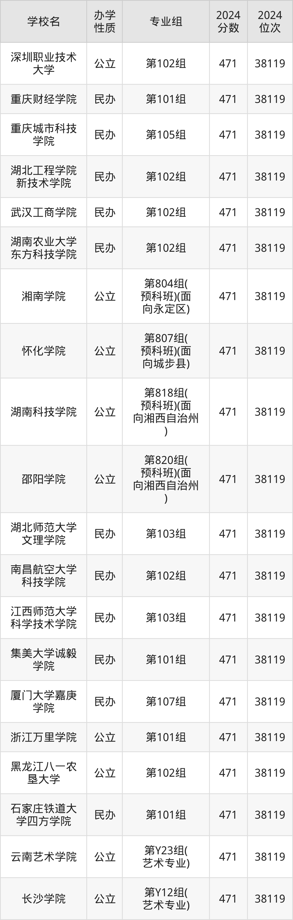 | 邵阳学院 | 第819组( 预科班)(面 向通道县) | 471 | 38119 |