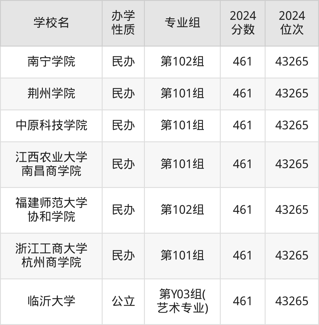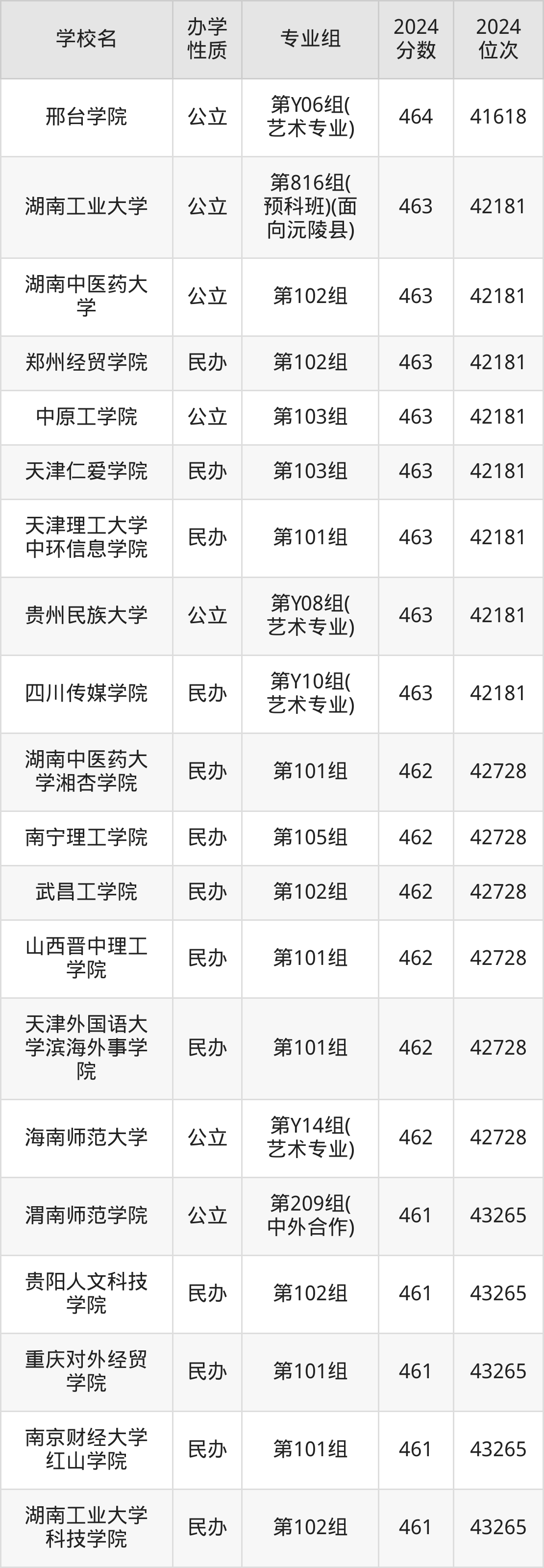 | 湘南学院 | 第809组( 预科班)(面 向全省) | 461 | 138327 |