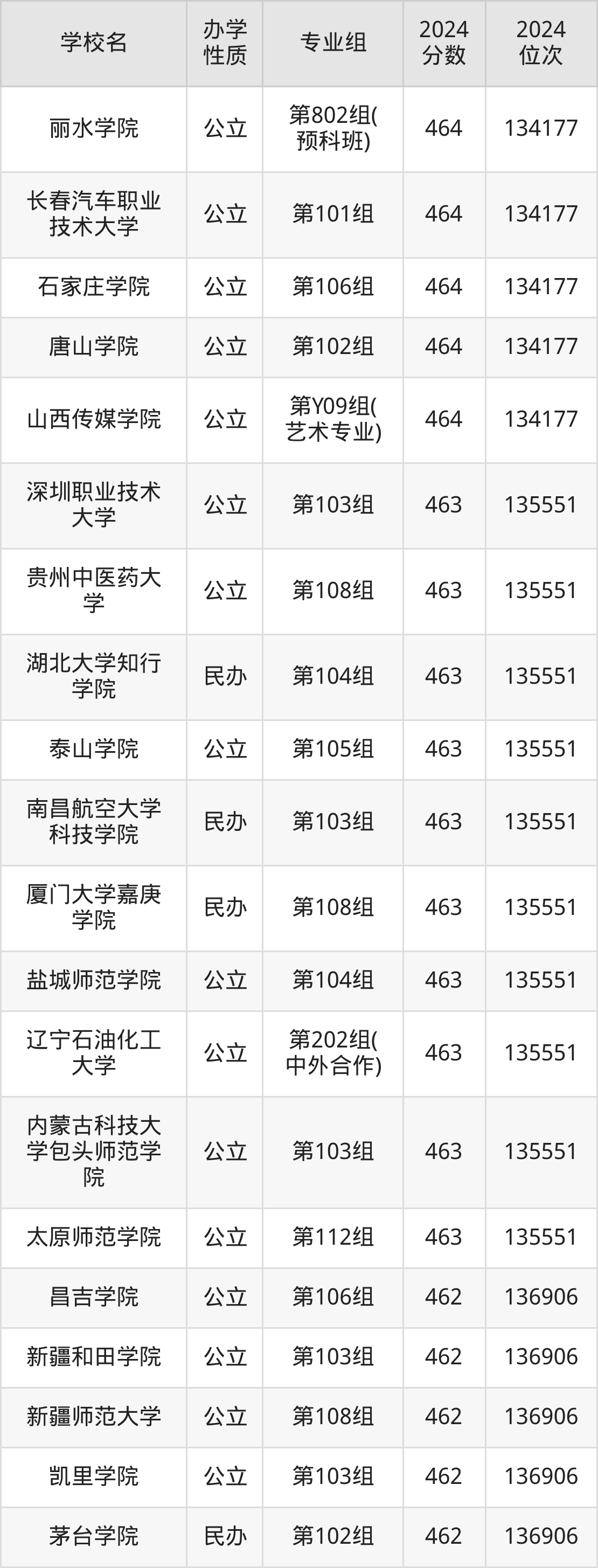 | 学校名 | 专业组 | 2024 分数 | 2024 位次 |
