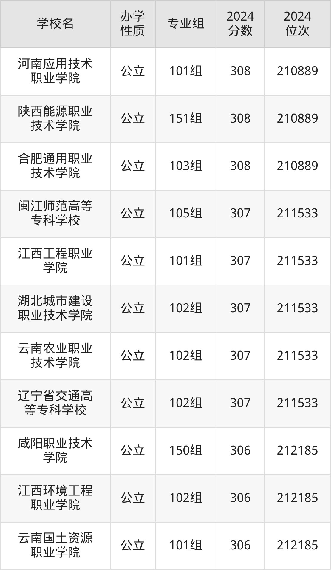 | 广西自然资源 职业技术学院 | 100组 | 312 | 100189 |