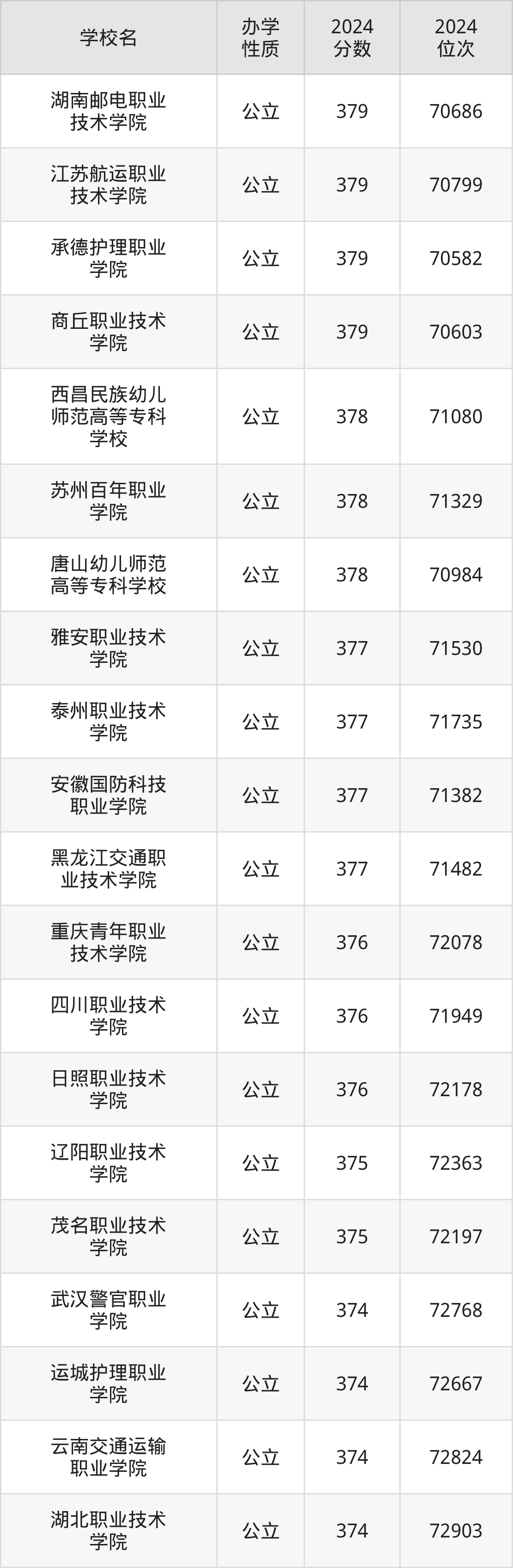 | 承德护理职业 学院 | 379 | 70582 |