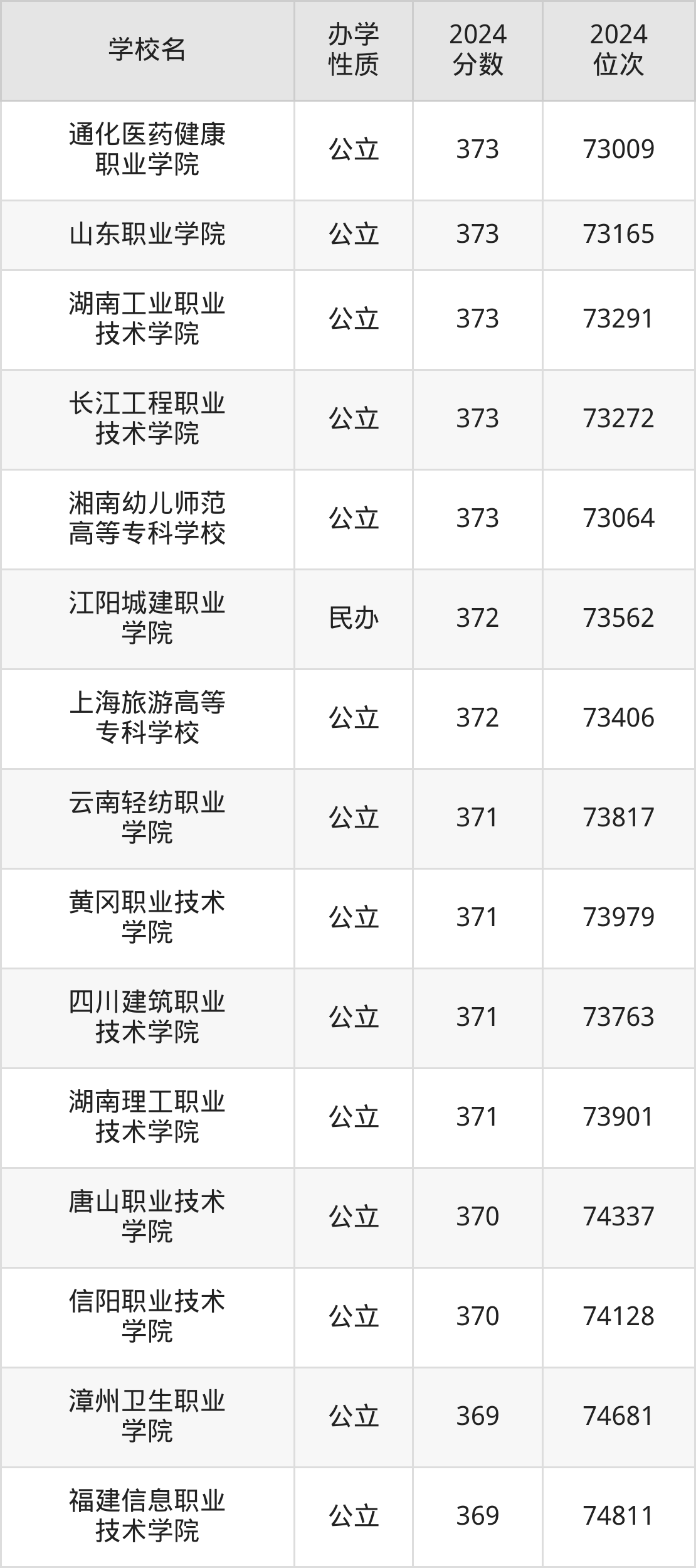 | 通化医药健康 职业学院 | 373 | 73009 |