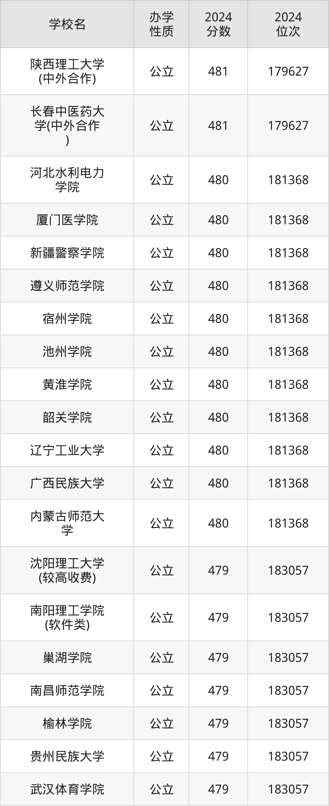 | 陕西理工大学 (中外合作) | 481 | 179627 |