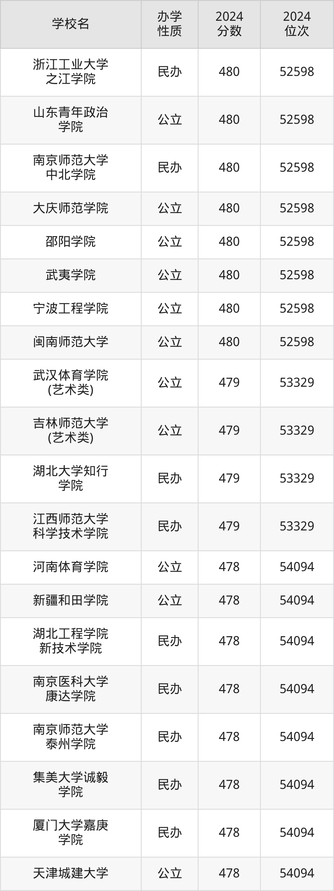 | 南华大学船山 学院 | 480 | 52598 |