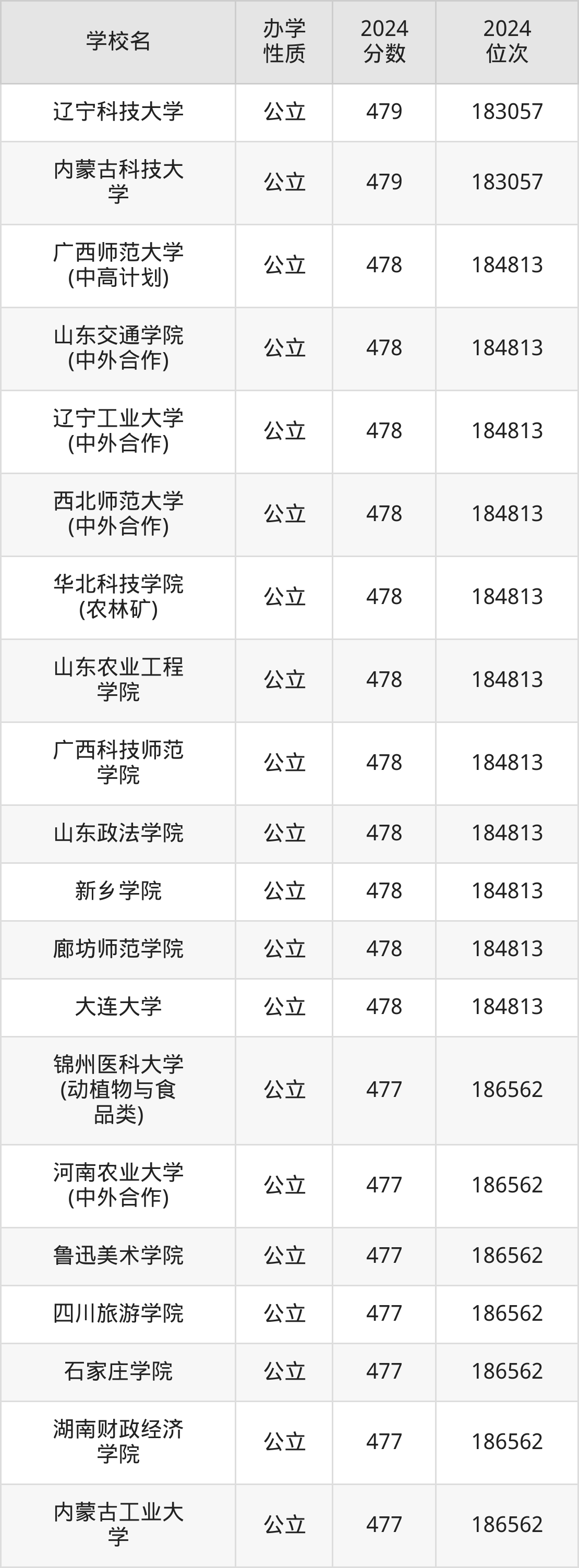 | 沈阳理工大学 (较高收费) | 479 | 183057 |