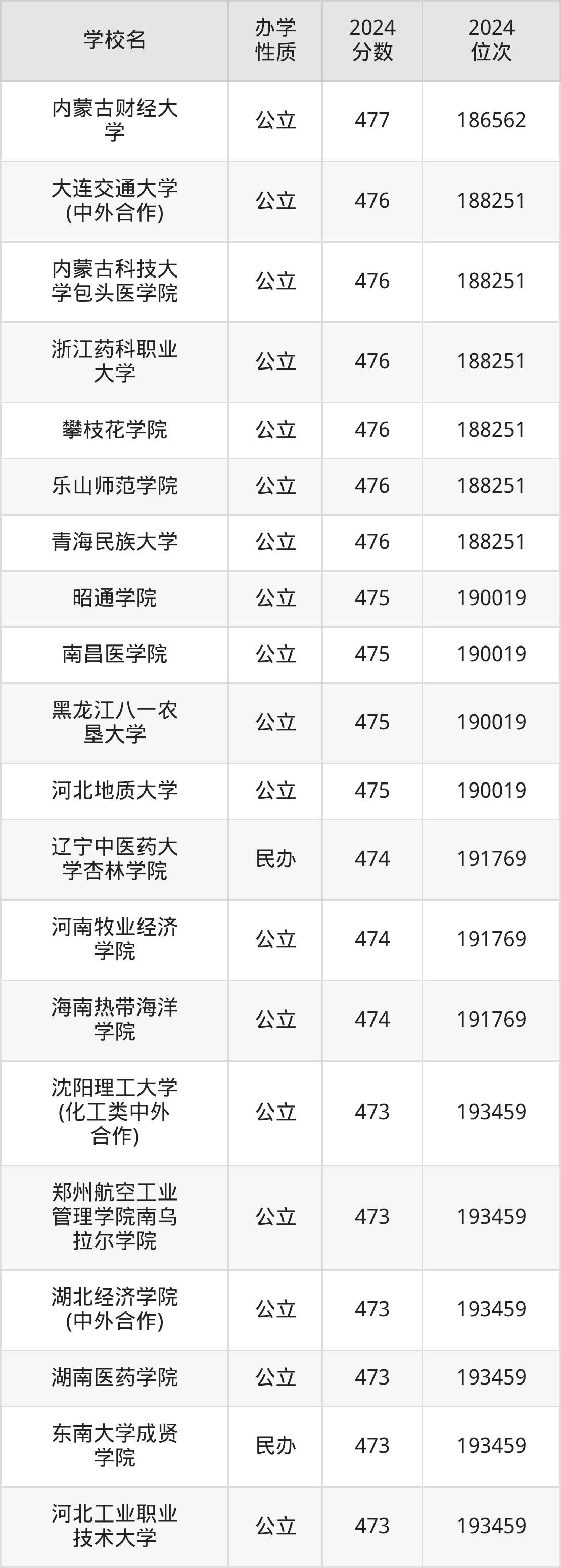 | 内蒙古科技大 学包头医学院 | 476 | 188251 |