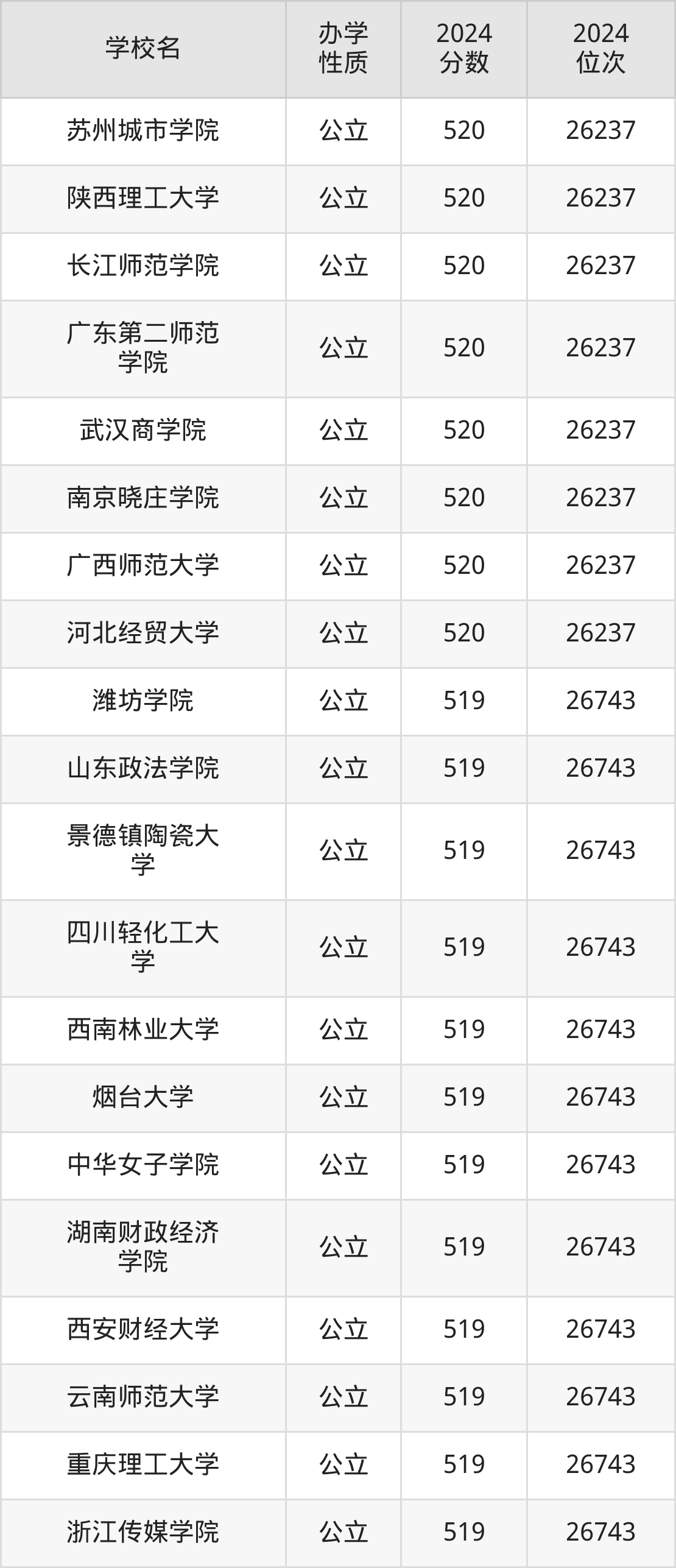 | 武汉工程大学 | 517 | 120583 |
