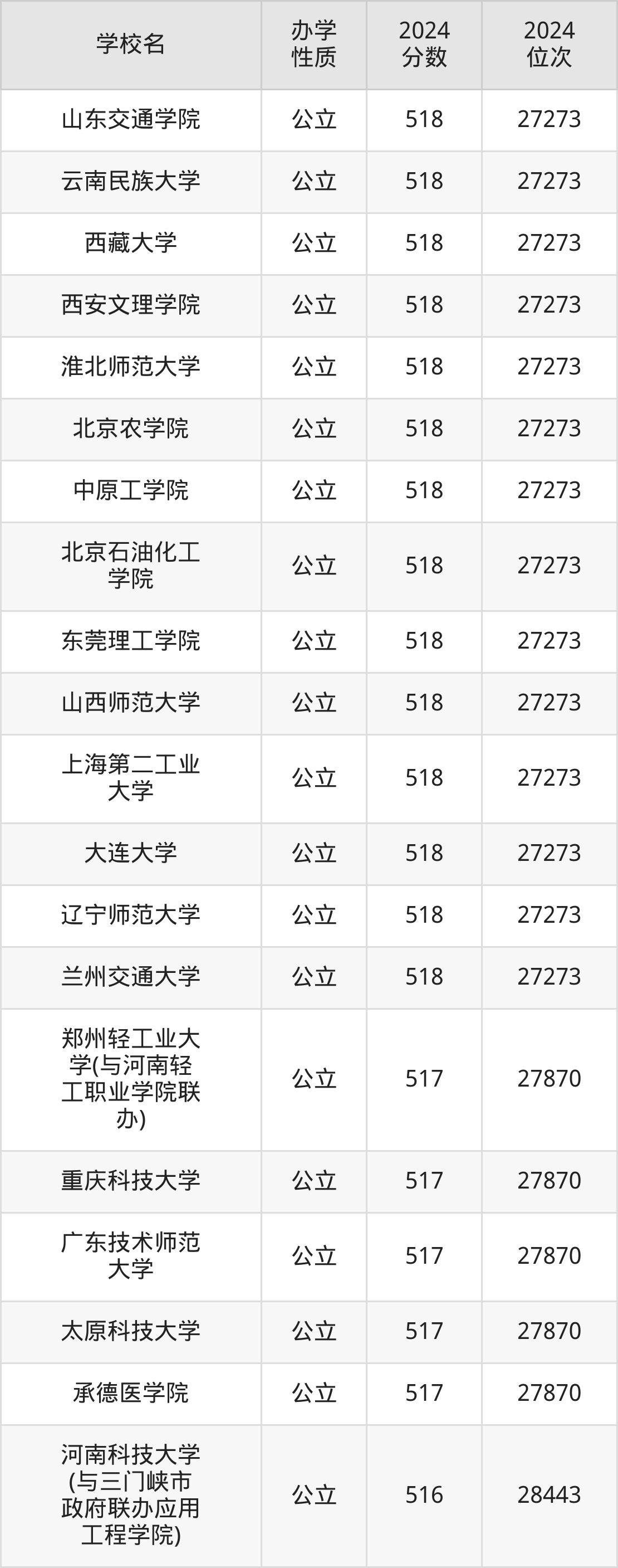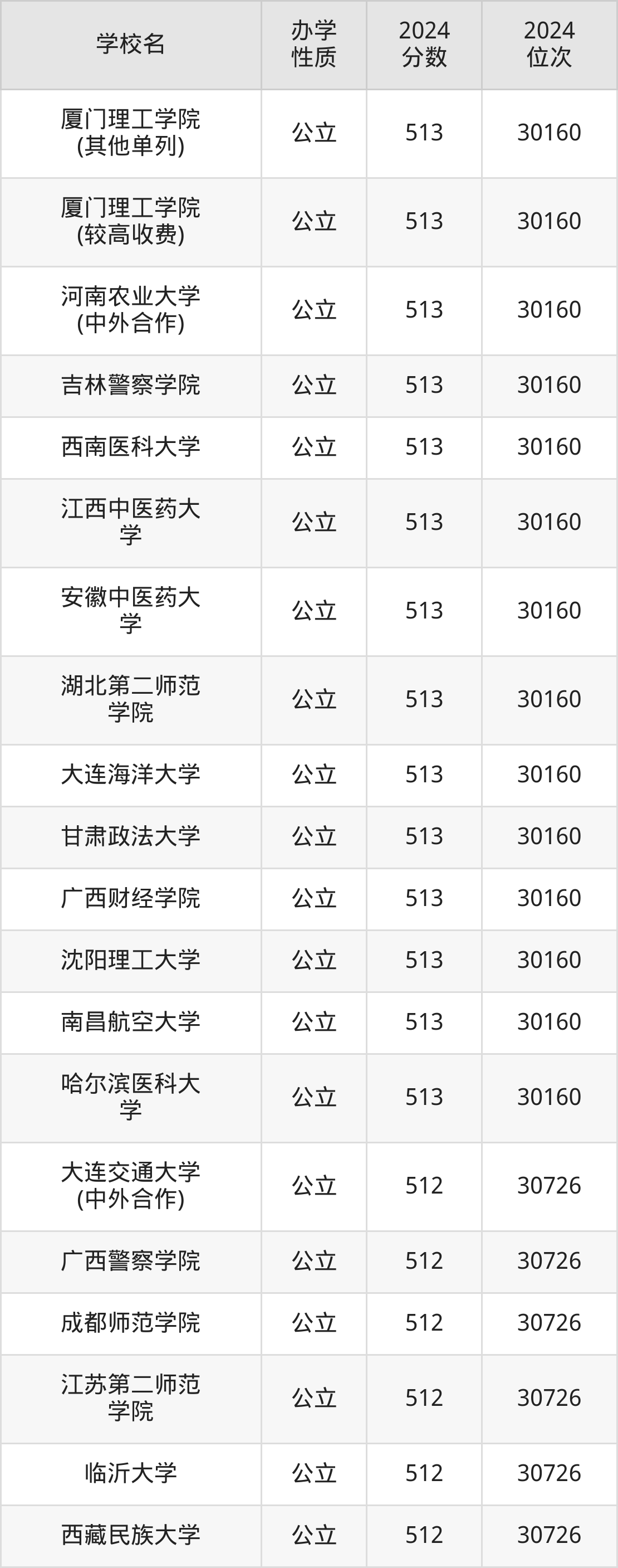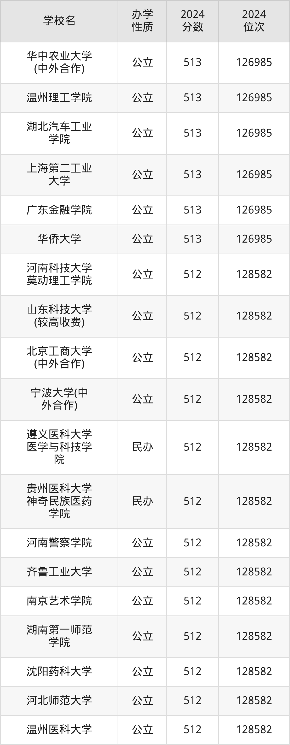 | 河南农业大学 (中外合作) | 513 | 30160 |