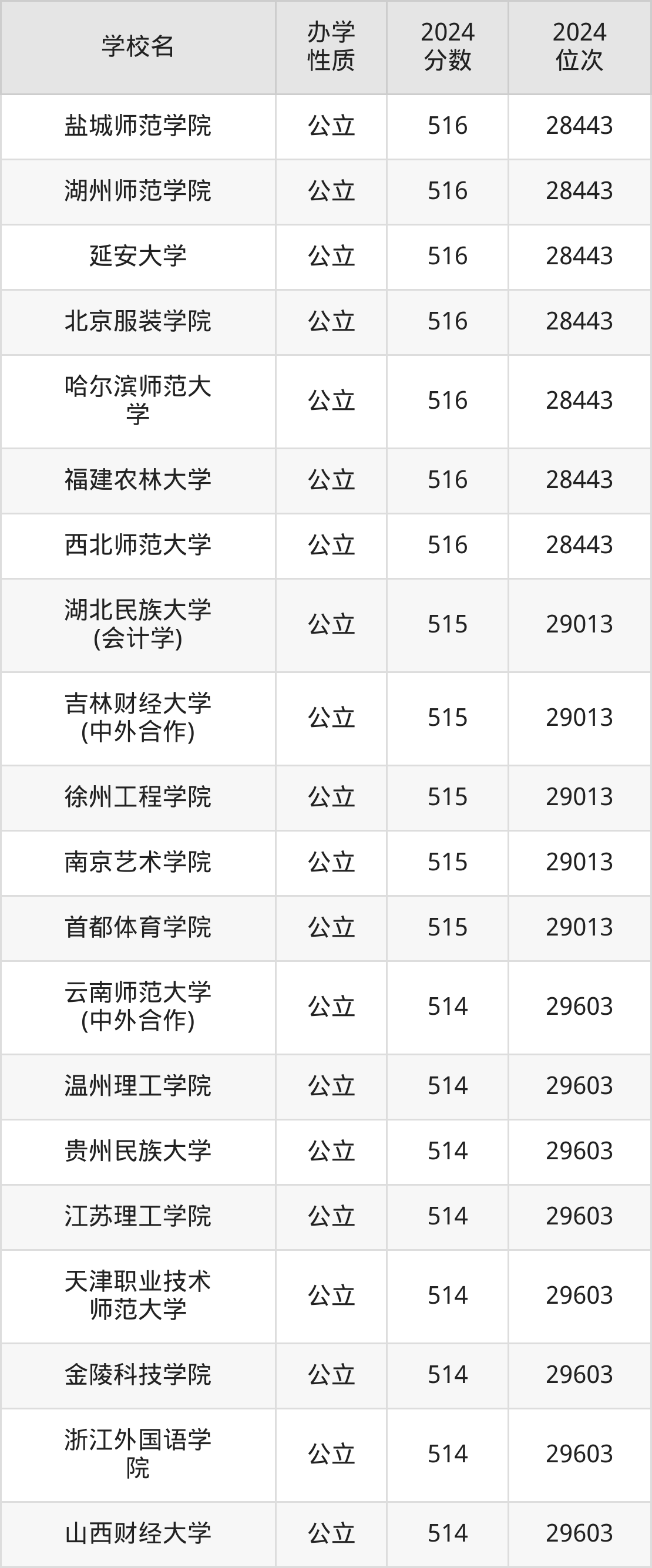 | 吉林财经大学 (中外合作) | 515 | 29013 |