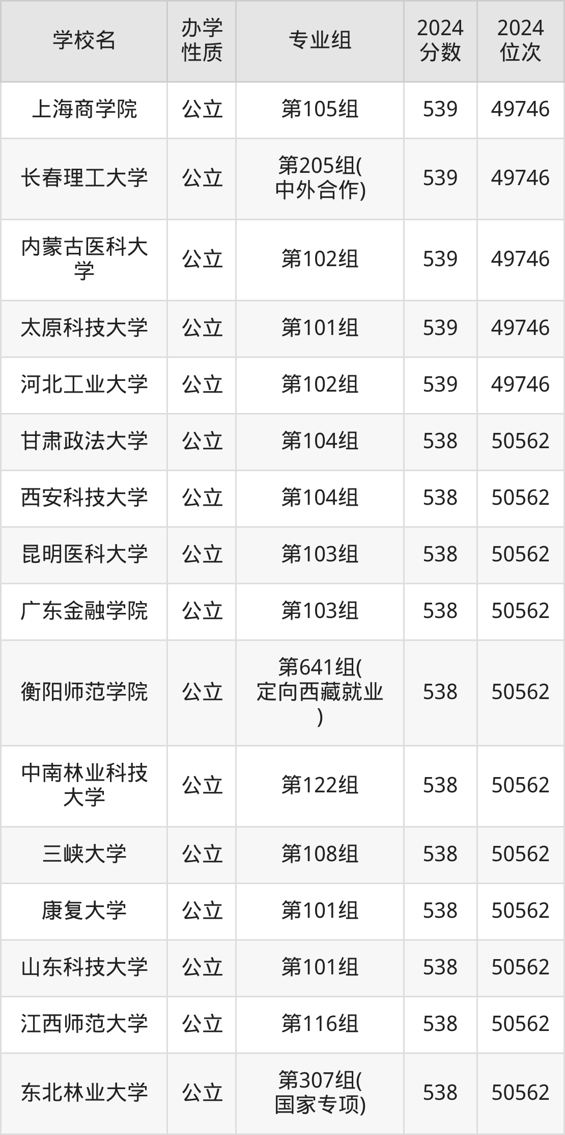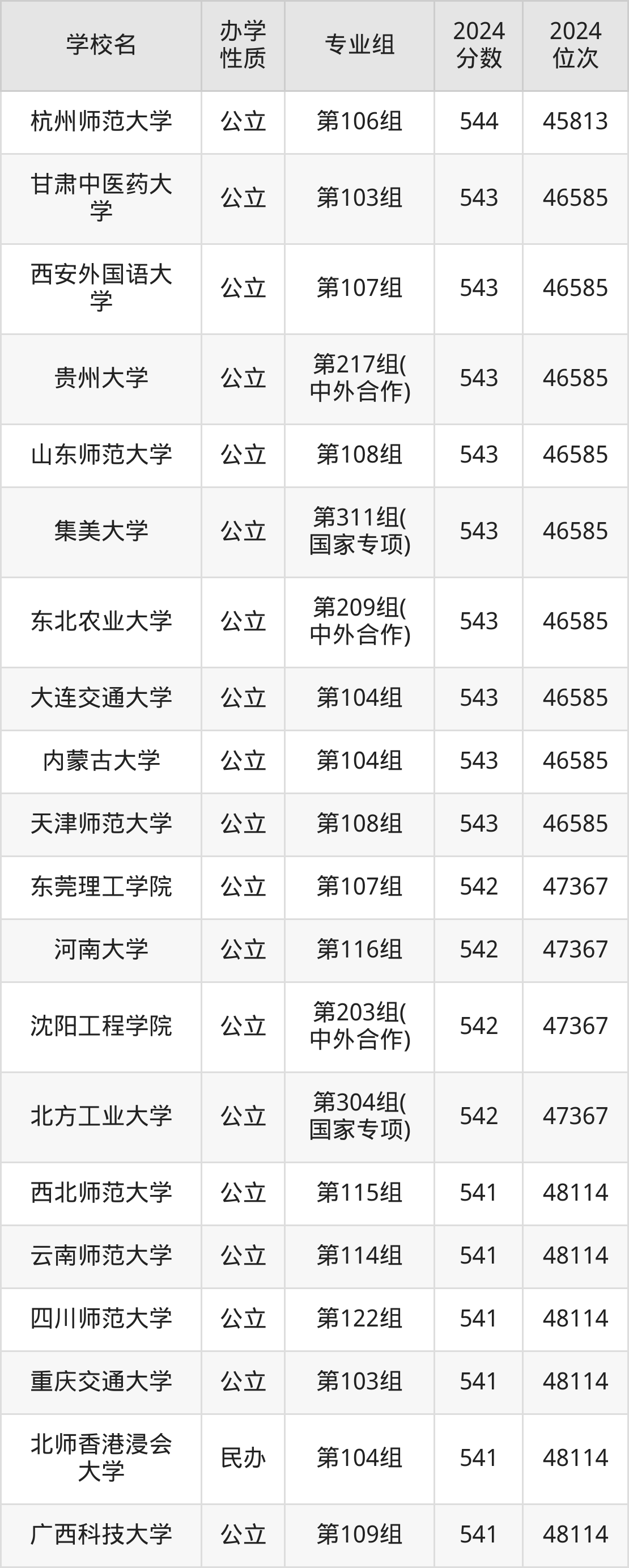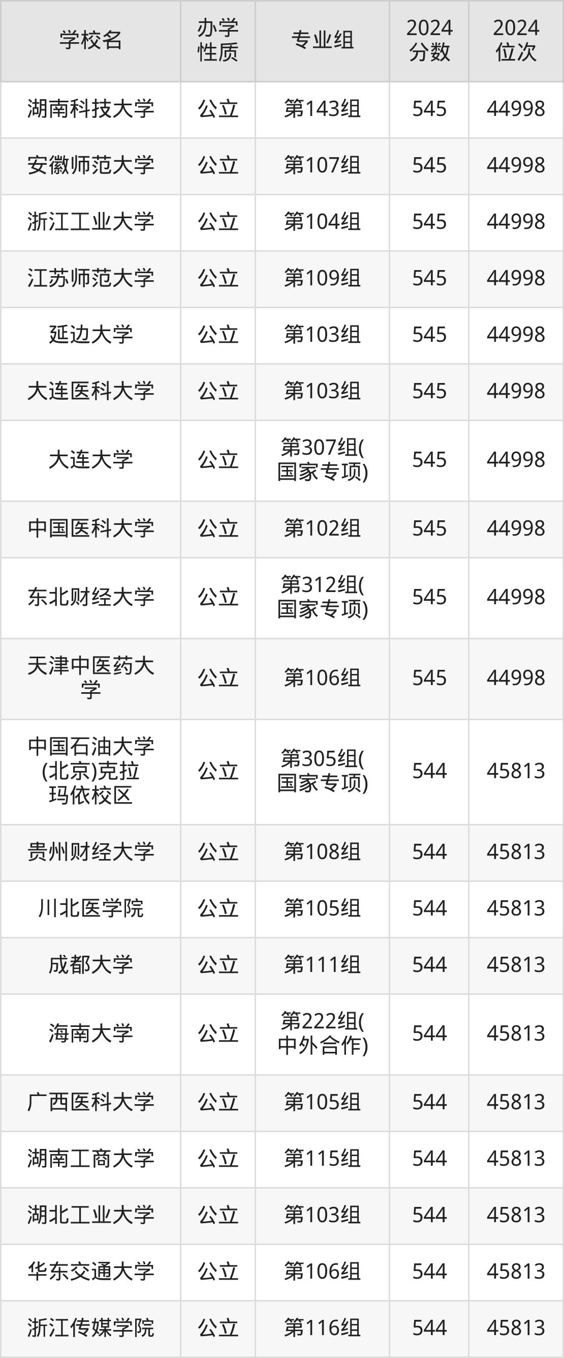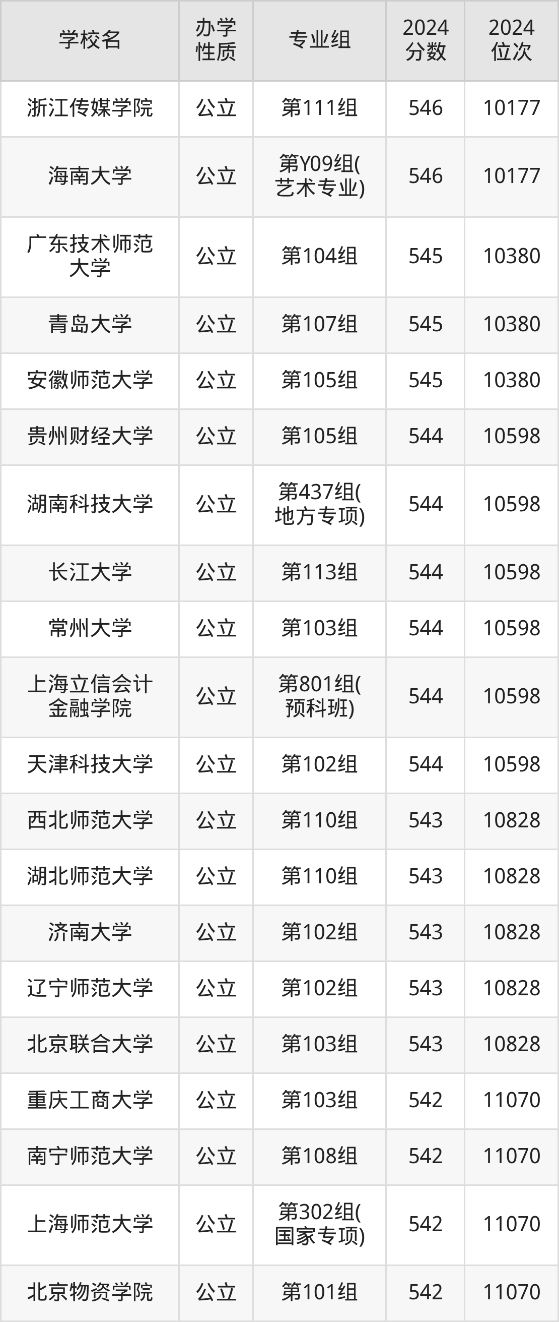 | 学校名 | 专业组 | 2024 分数 | 2024 位次 |