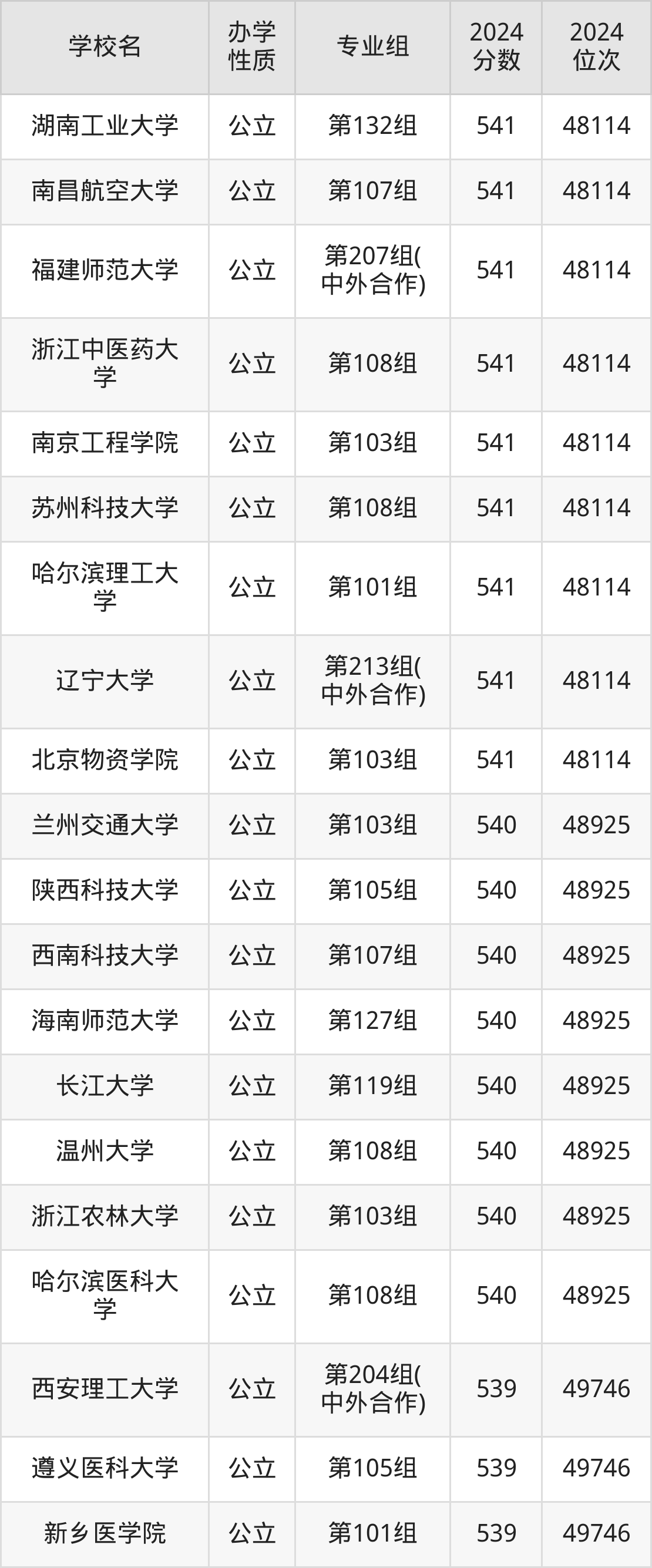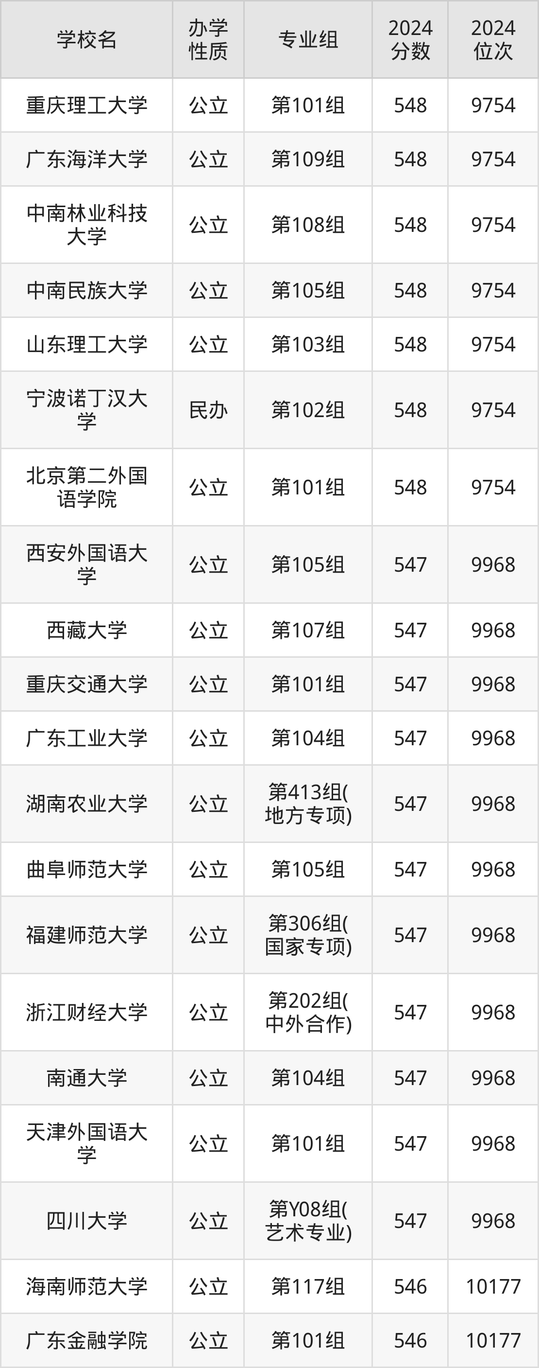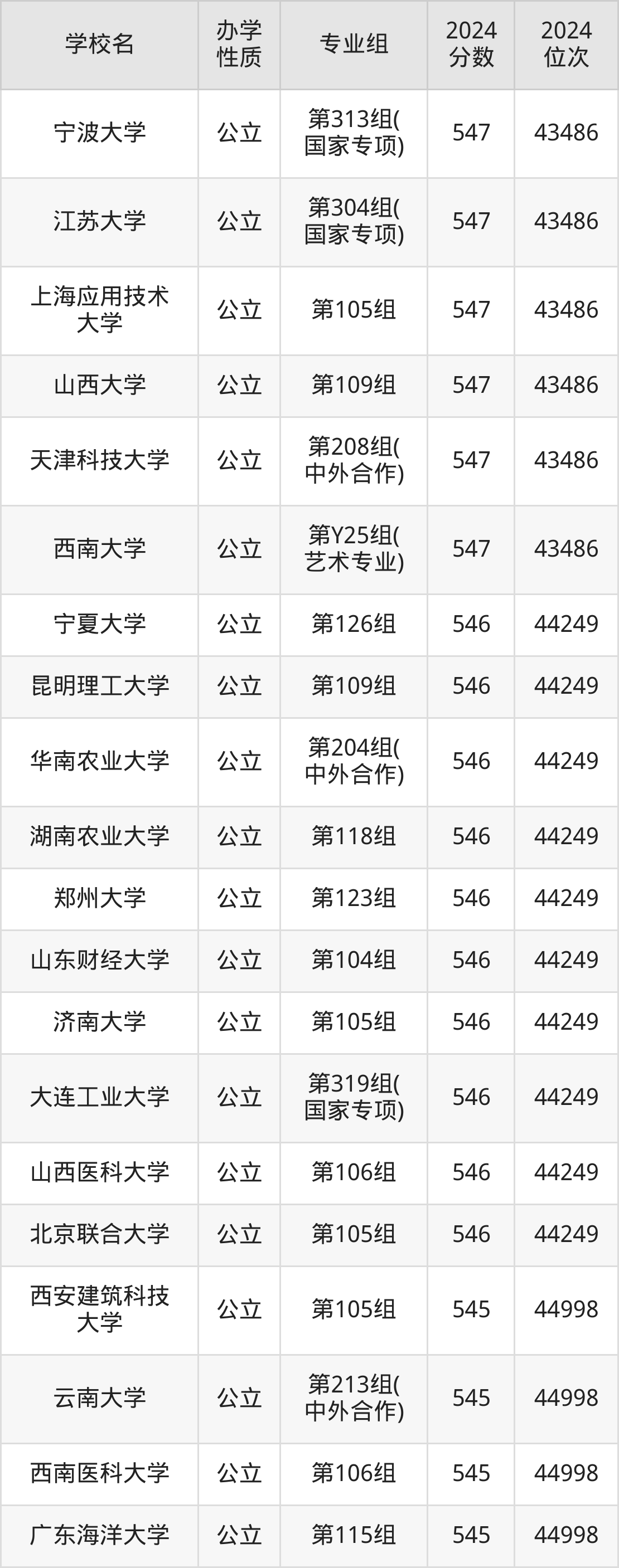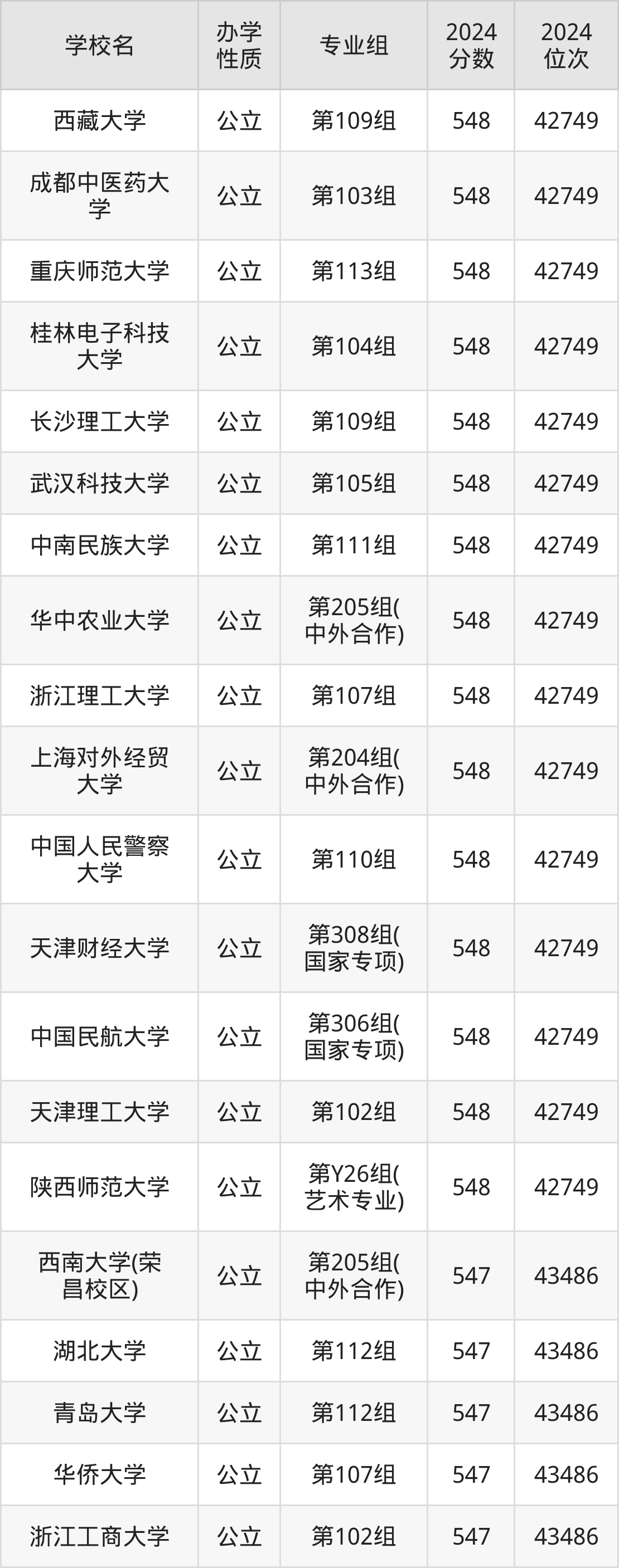 | 学校名 | 专业组 | 2024 分数 | 2024 位次 |