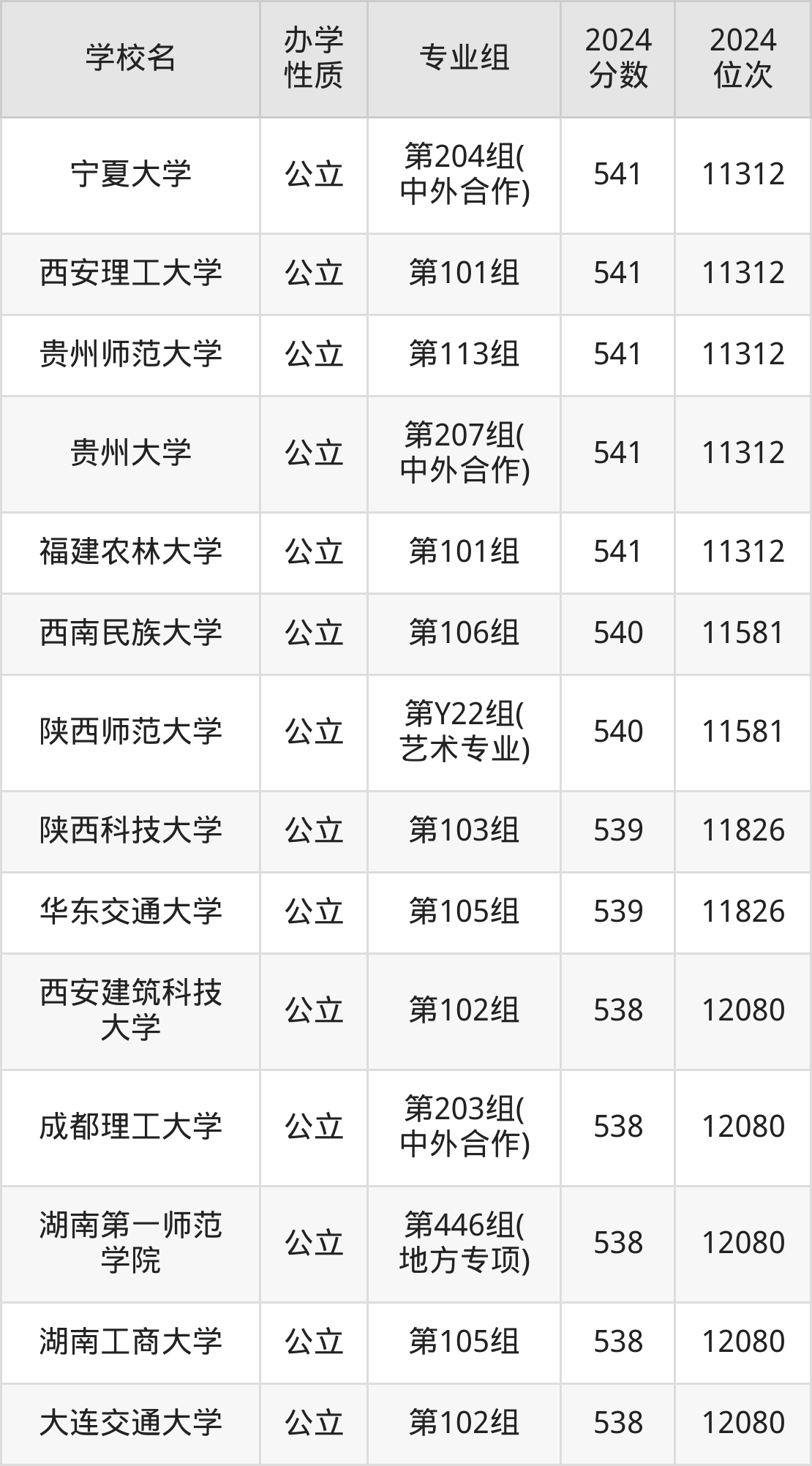 | 西南民族大学 | 第309组( 国家专项) | 538 | 12080 |