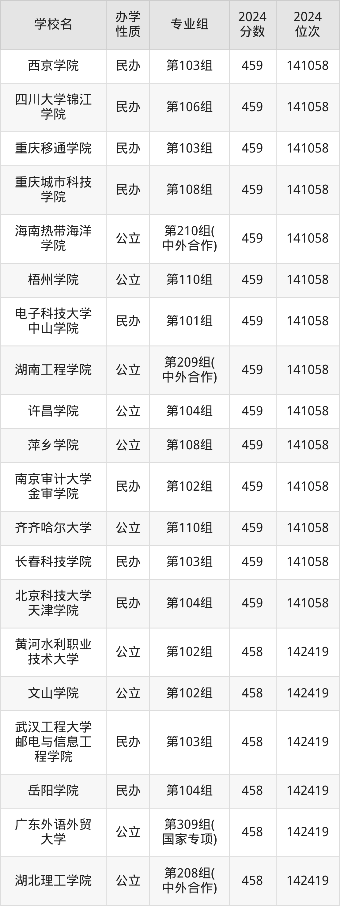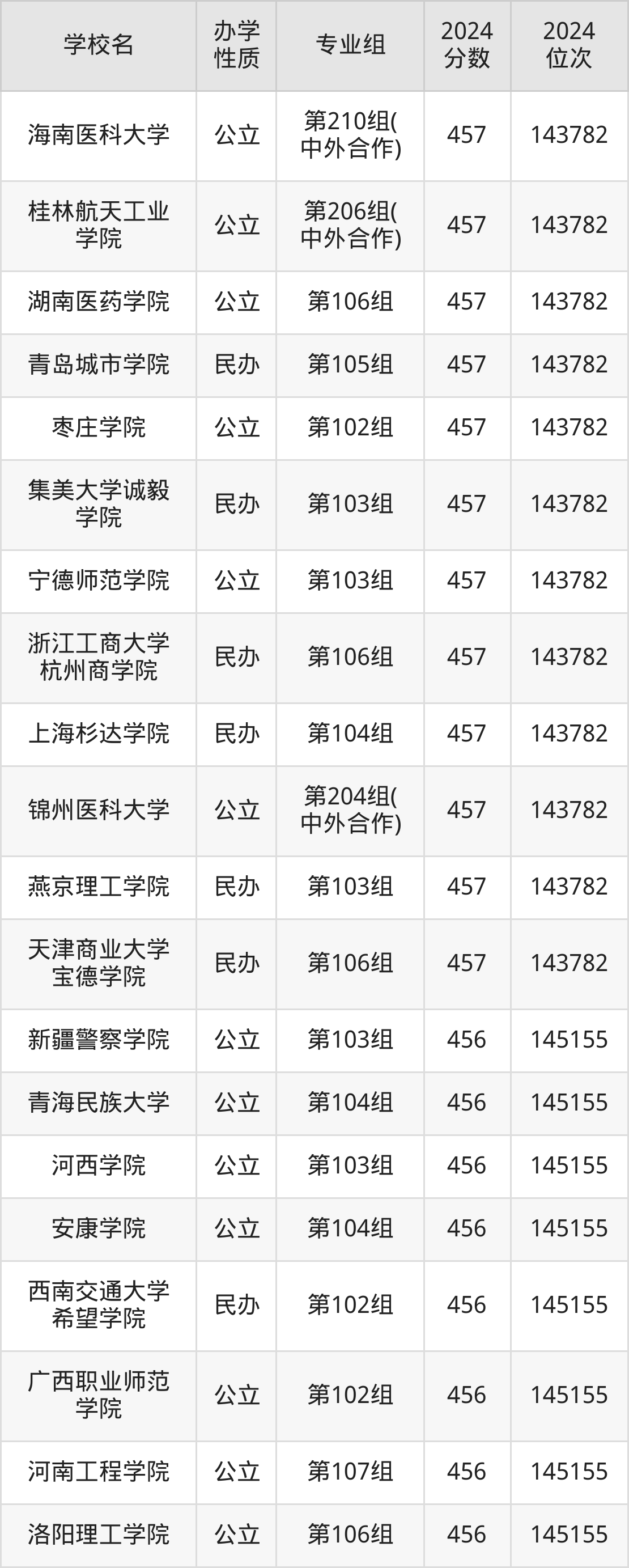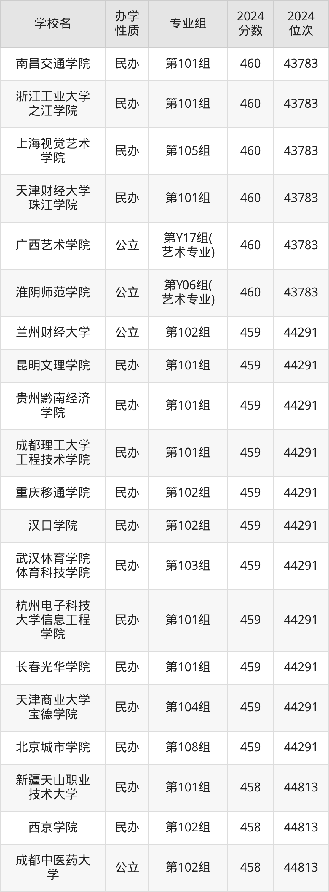 | 学校名 | 专业组 | 2024 分数 | 2024 位次 |