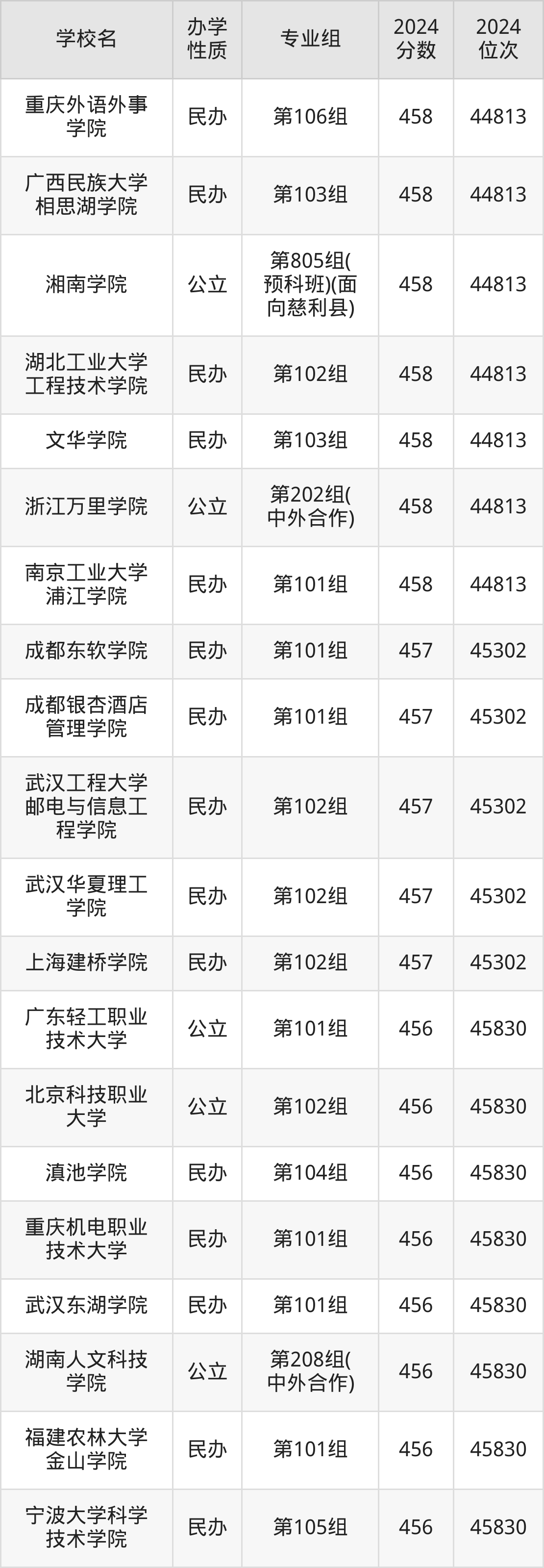 2024年湖南历史类460分考生能上云南经济管理学院、西南财经大学天府学院、中南林业科技大学涉外学院、怀化学院、湖南科技学院等109所二本院校,具体录取分数线及位次为: