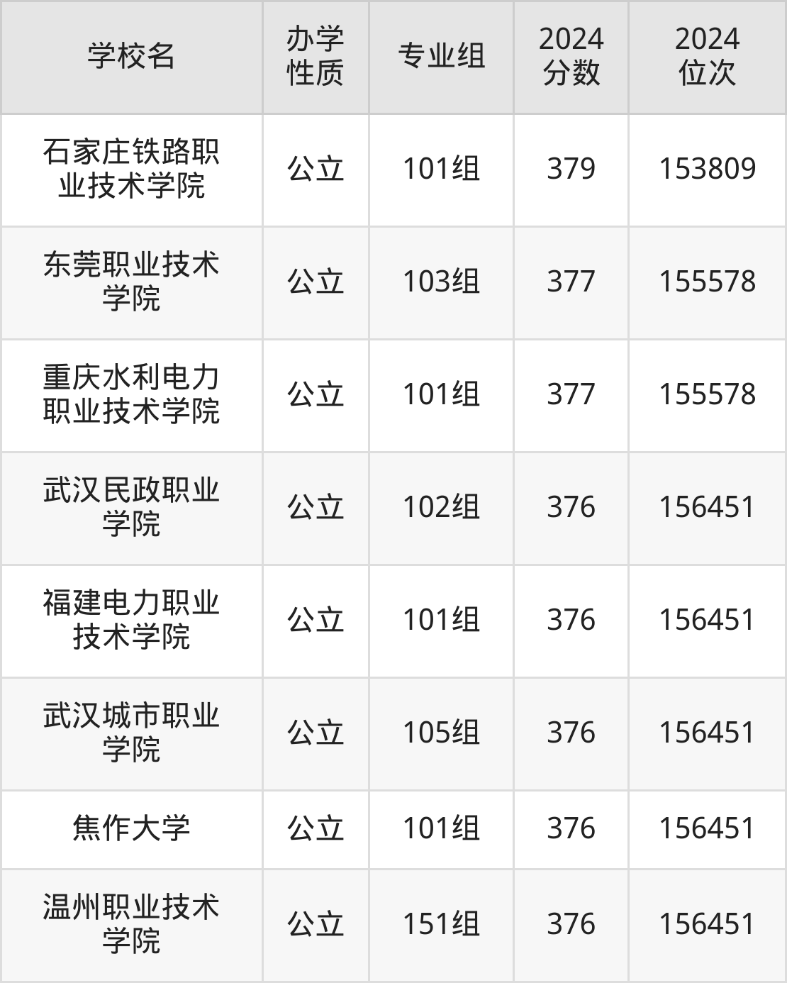 | 武汉城市职业 学院 | 105组 | 376 | 156451 |