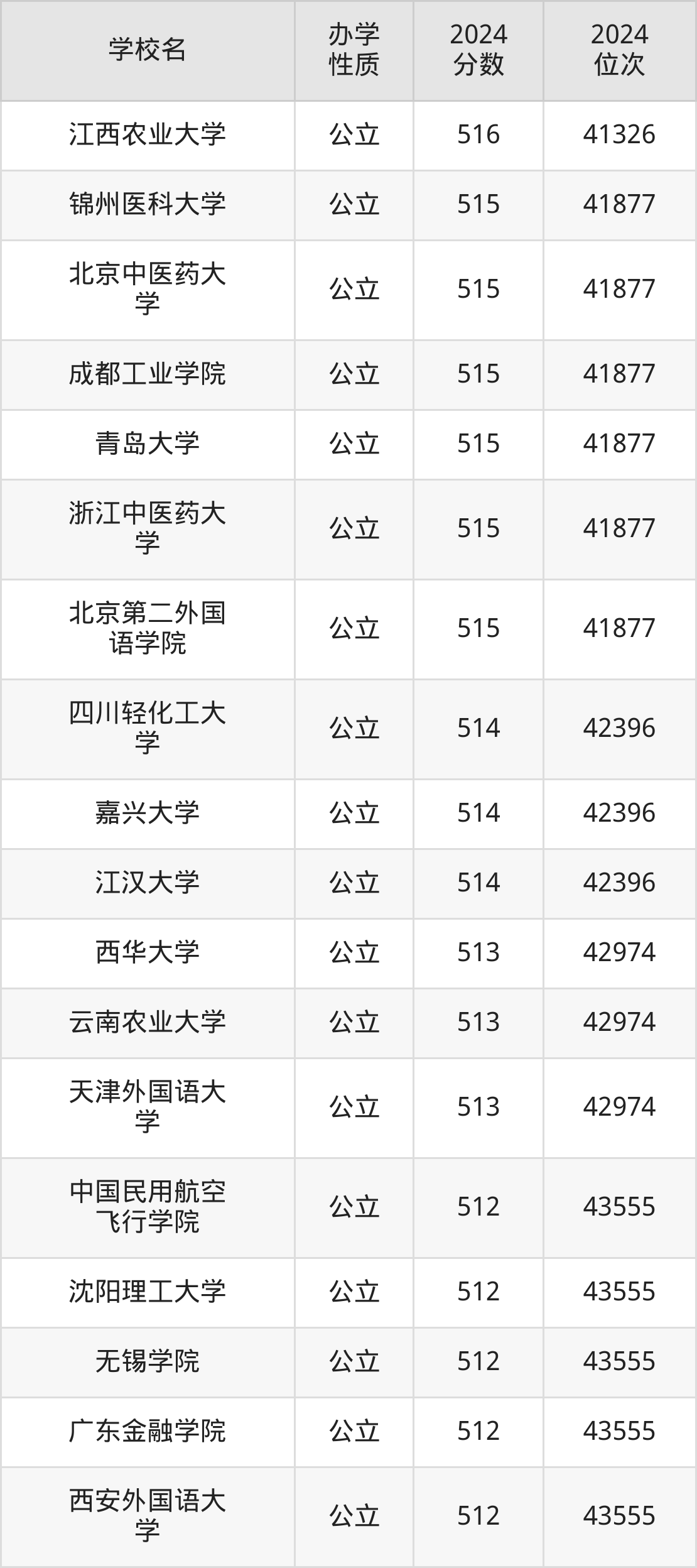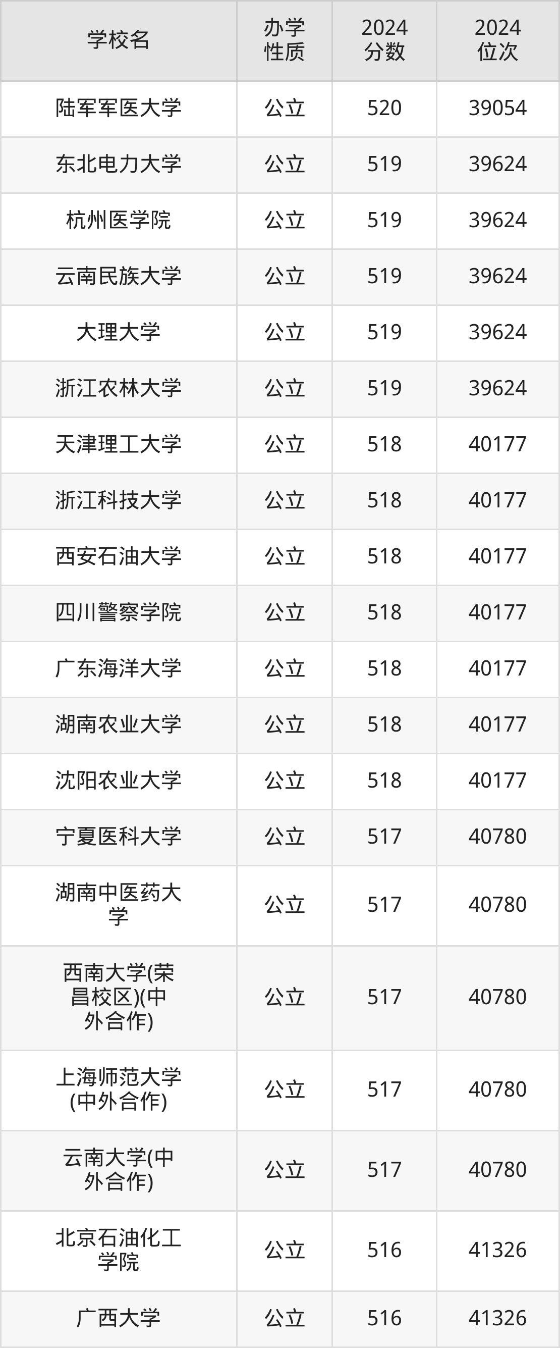 | 西南大学(荣 昌校区)(中 外合作) | 517 | 40780 |