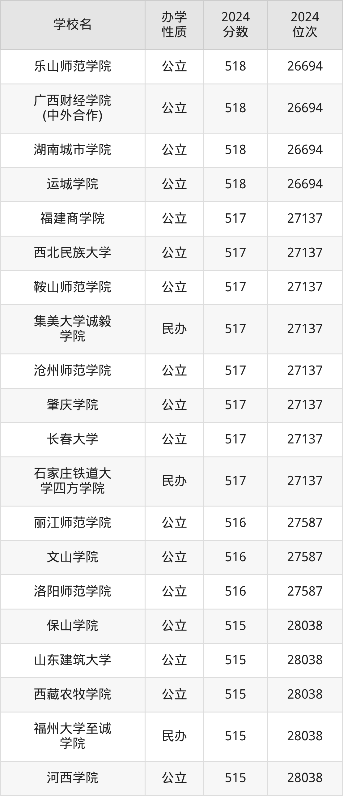 为了方便2025届考生了解自己能上哪些大学,本文也整理出了云南517分左右能上的所有大学名单,供2025年考生参考。