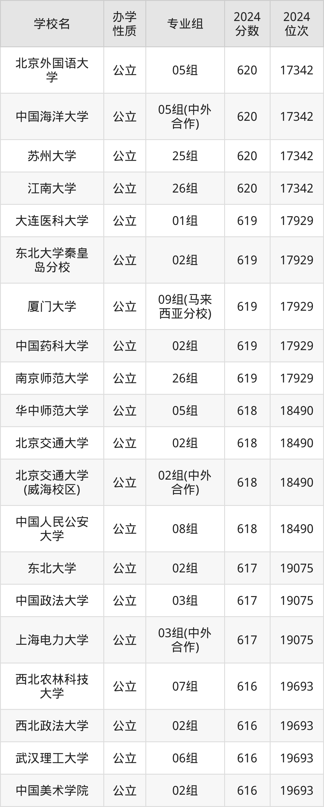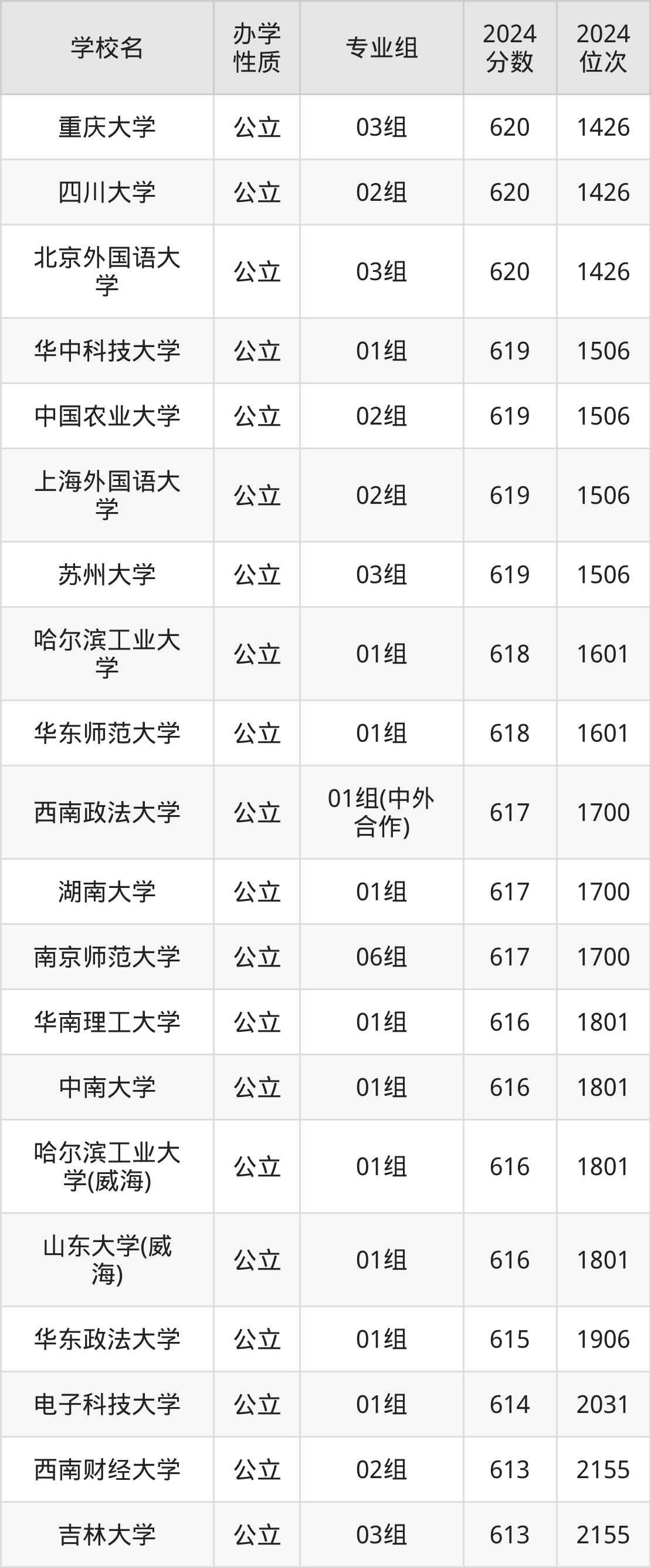 | 学校名 | 专业组 | 2024 分数 | 2024 位次 |