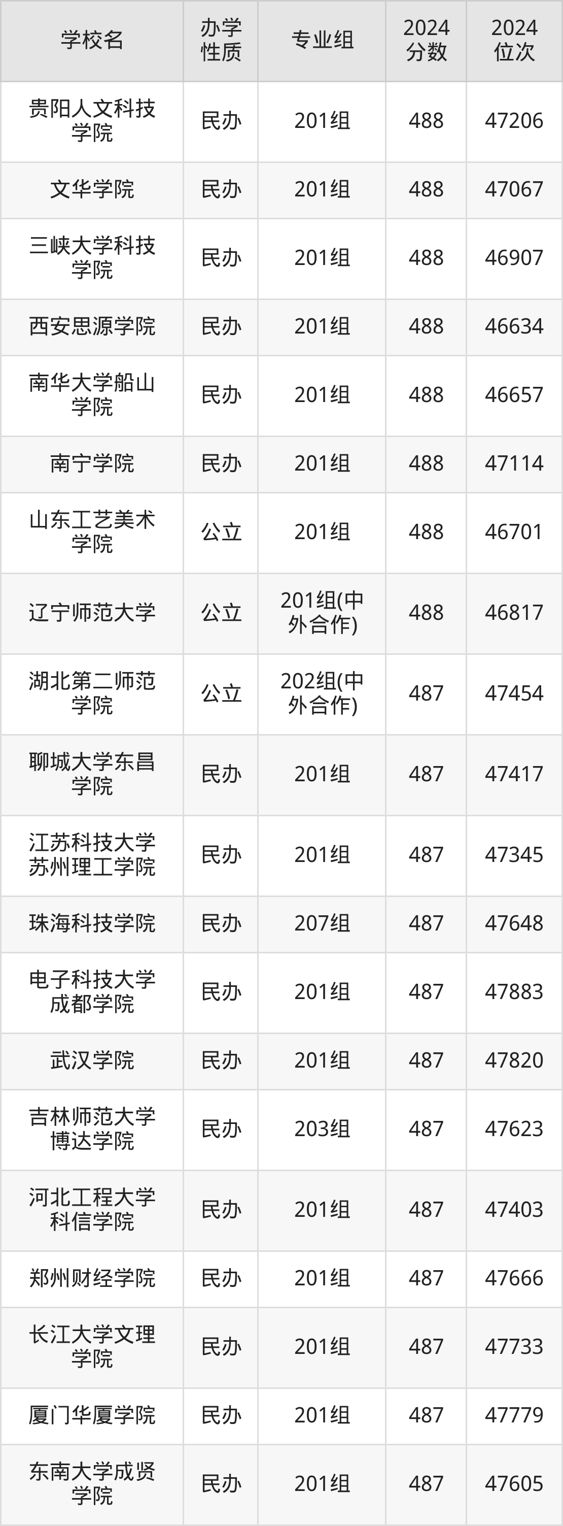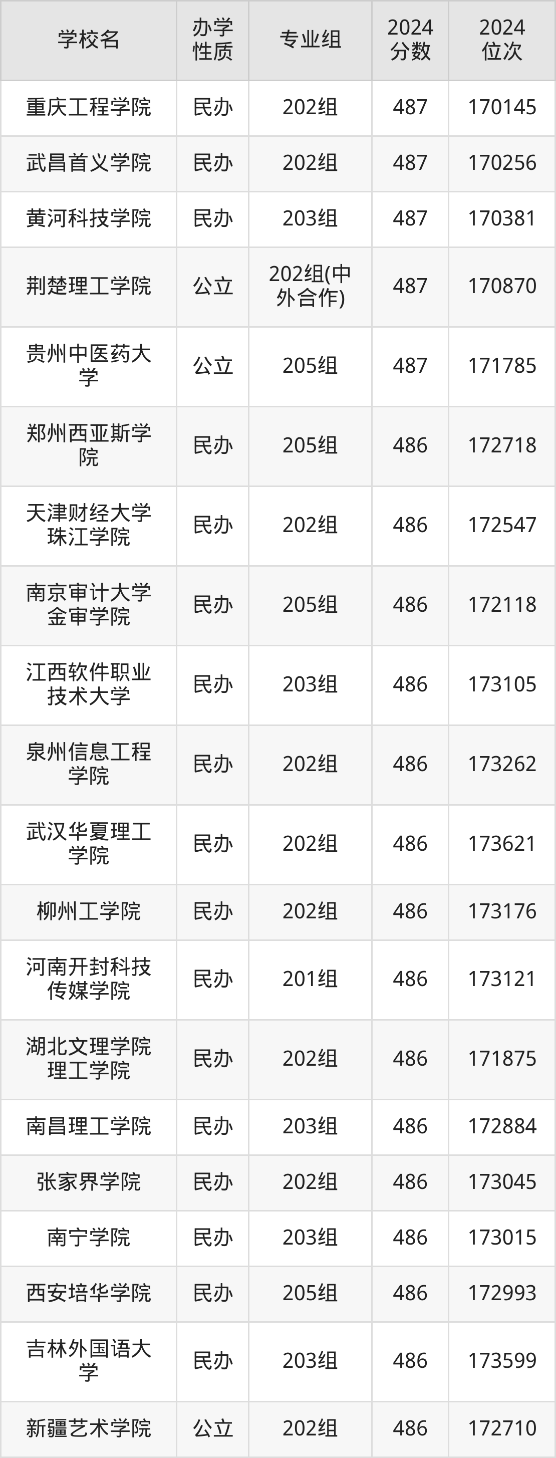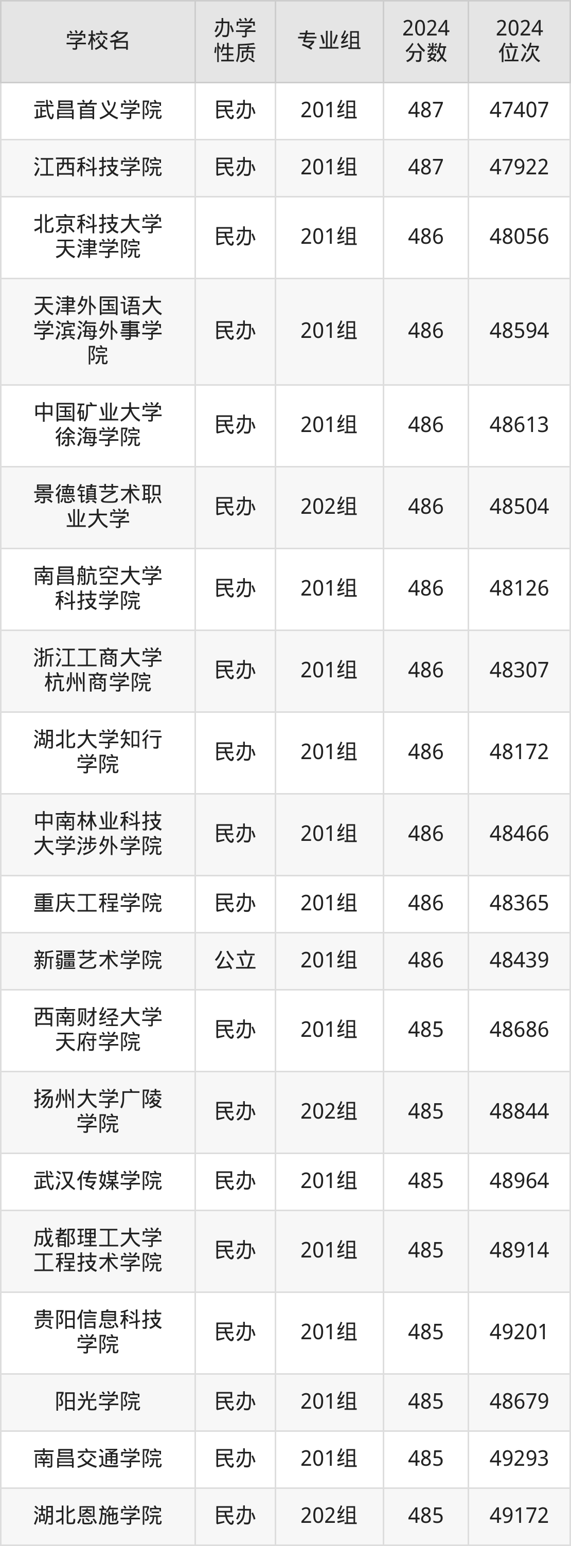 | 河北东方学院 | 203组 | 486 | 173496 |
