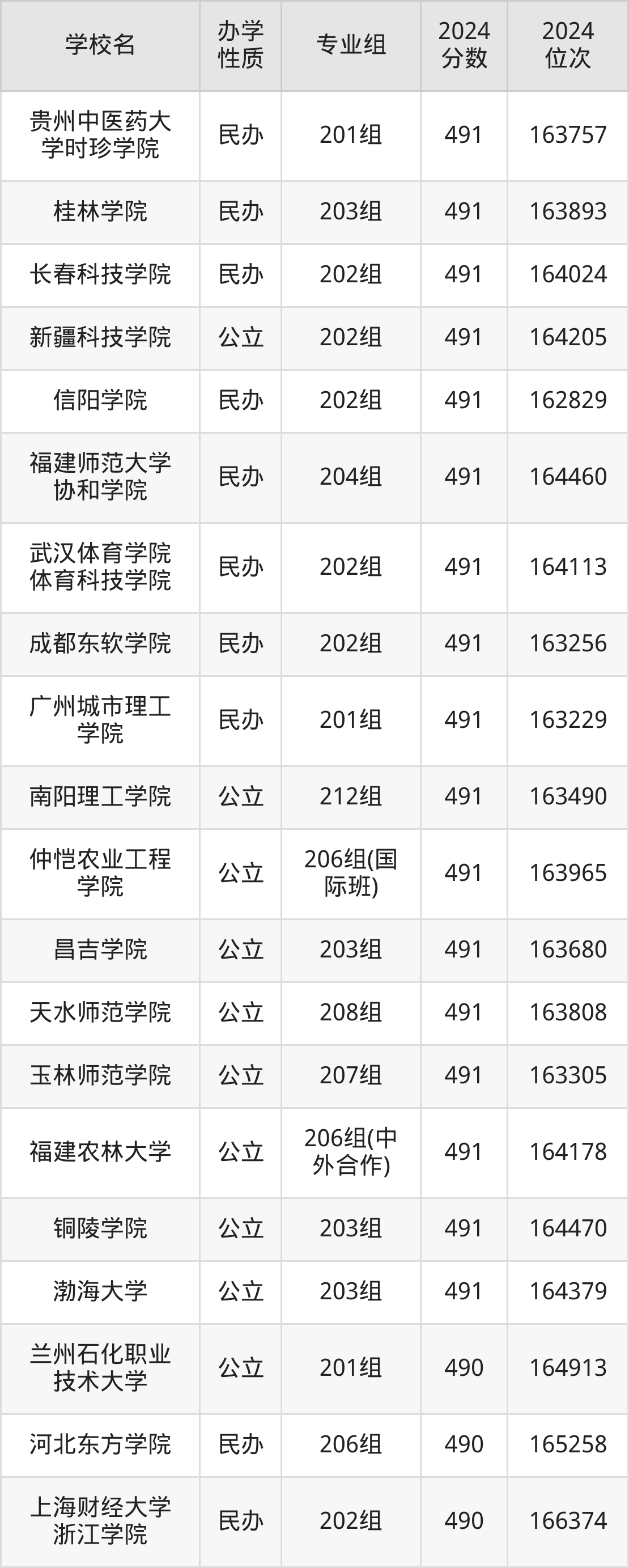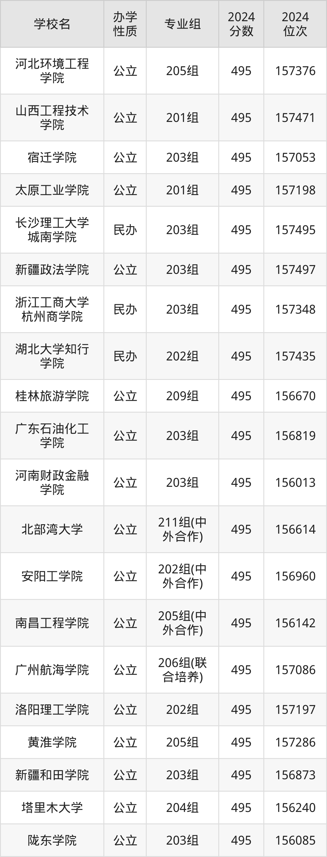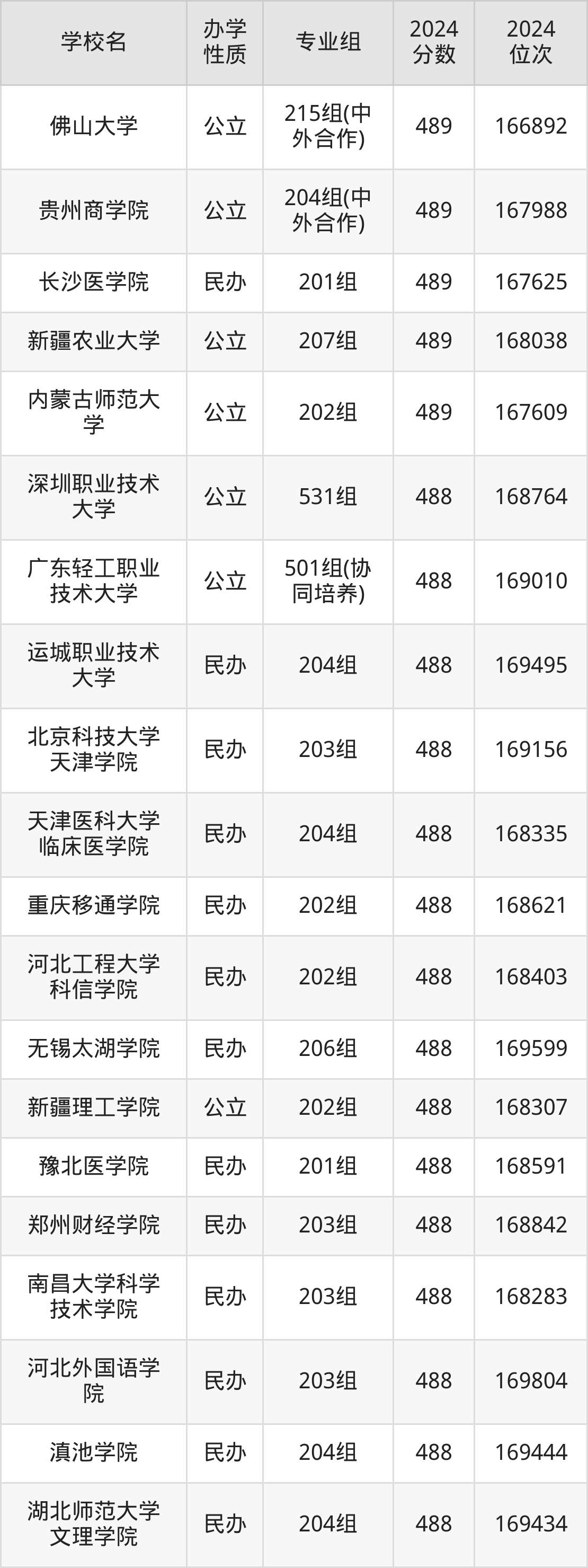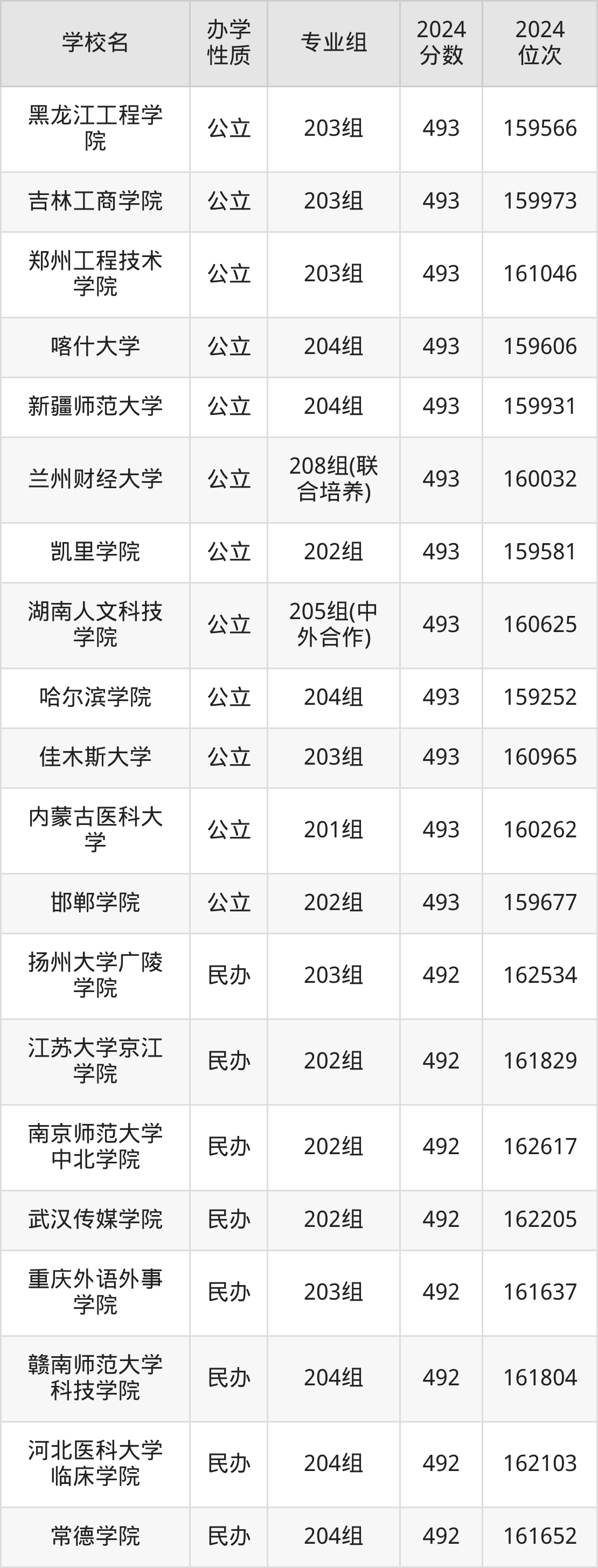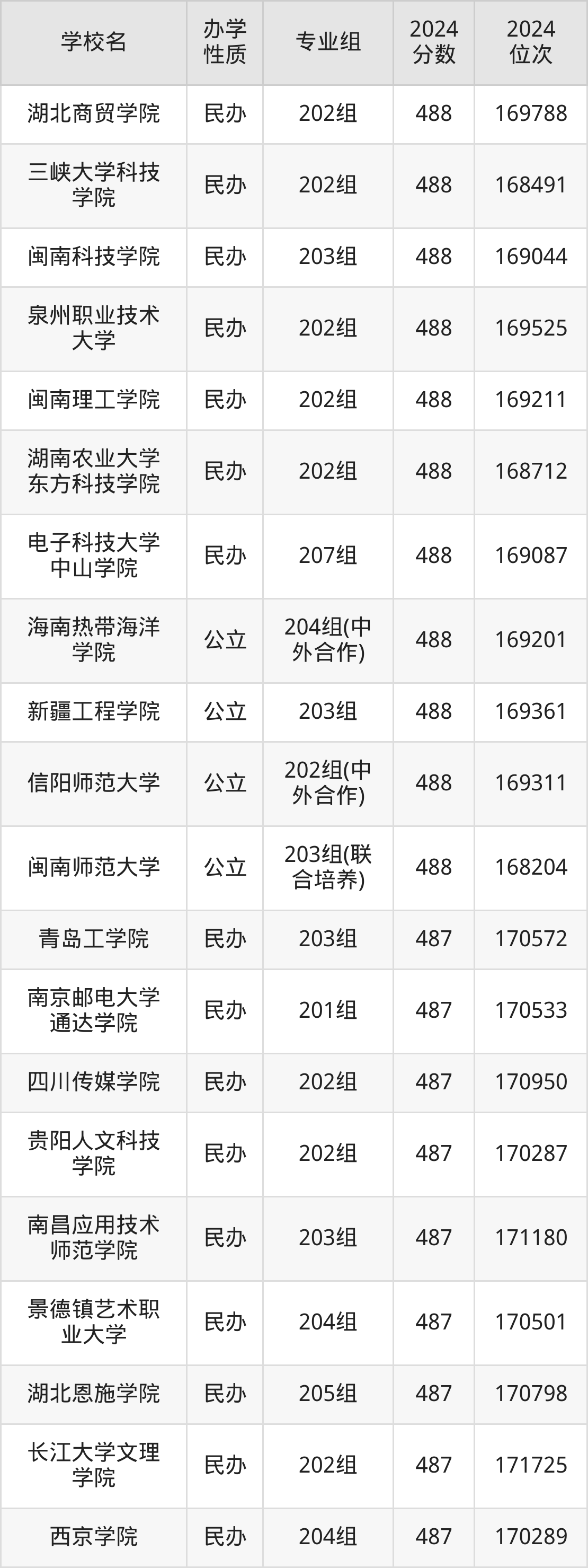 | 新疆和田学院 | 204组 | 487 | 170100 |